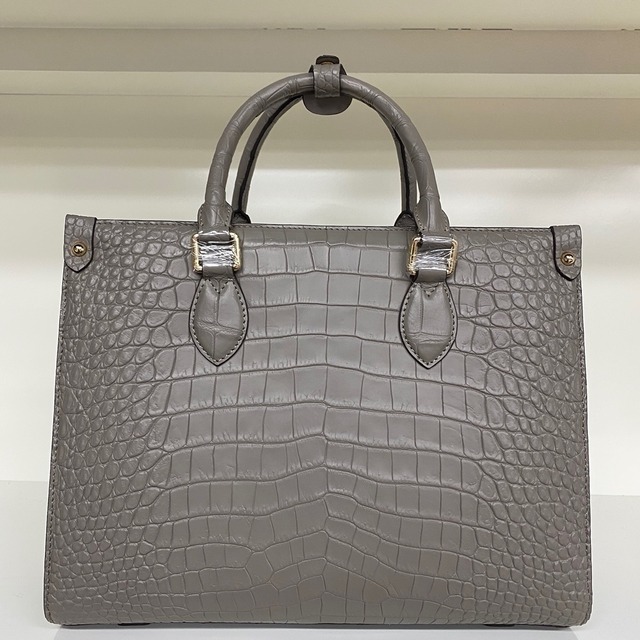 最高 クロコダイルレザー ワニ革~腹革センター取り マット加工 A4/PC対応 ビジネス/ハンドバッグ トートバッグ 大容量 グレー