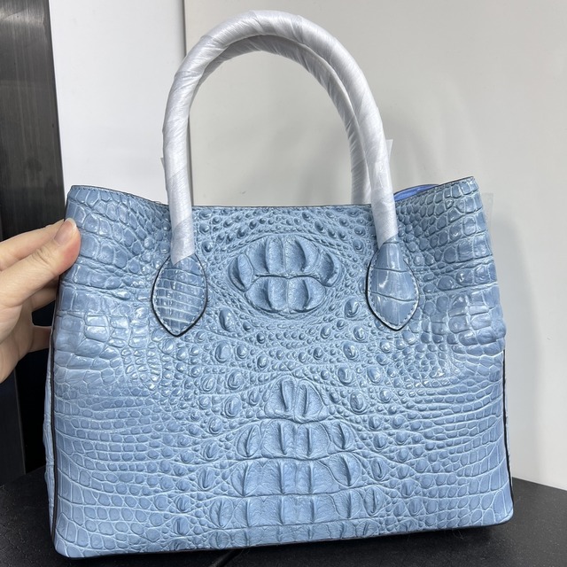 高品質 クロコダイルレザー ワニ革本物保証 レディース ショルダーバッグ ハンドバッグ 大容量 ブルー