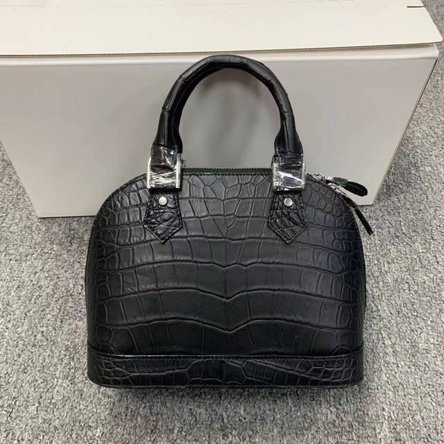 最高級 クロコダイル ワニ革本物 センター取り マット加工 本革レザー ハンドバッグ 腹革使用 ブラック