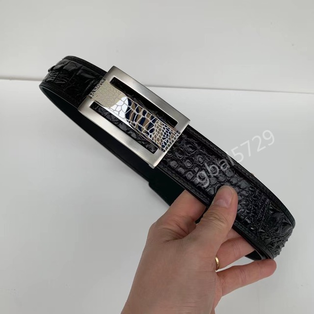 貴重な一枚革 クロコダイル本物 レザー ワニ革保証 メンズ ベルト 本革 銀色金具付き 100cm-120cm 巾38mm 黒