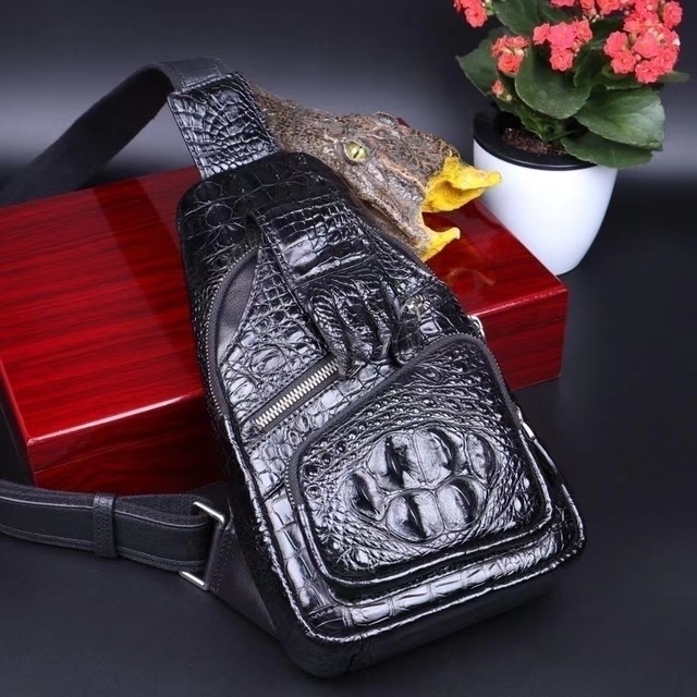 激安新品! クロコダイル レザー 鰐 天然ワニ革 ◆ 本物保証 爪付き ボディバッグ メンズ 黒
