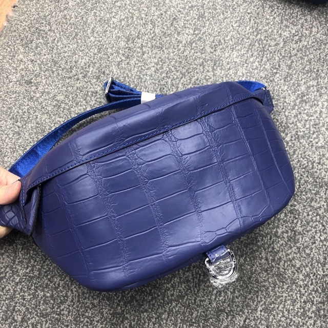 人気 クロコダイル マット加工 レザー ウエストバッグ ワニ革 レア 本革 鞄 ウエストポーチ メンズバッグ 多機能 腹部革使用 紺