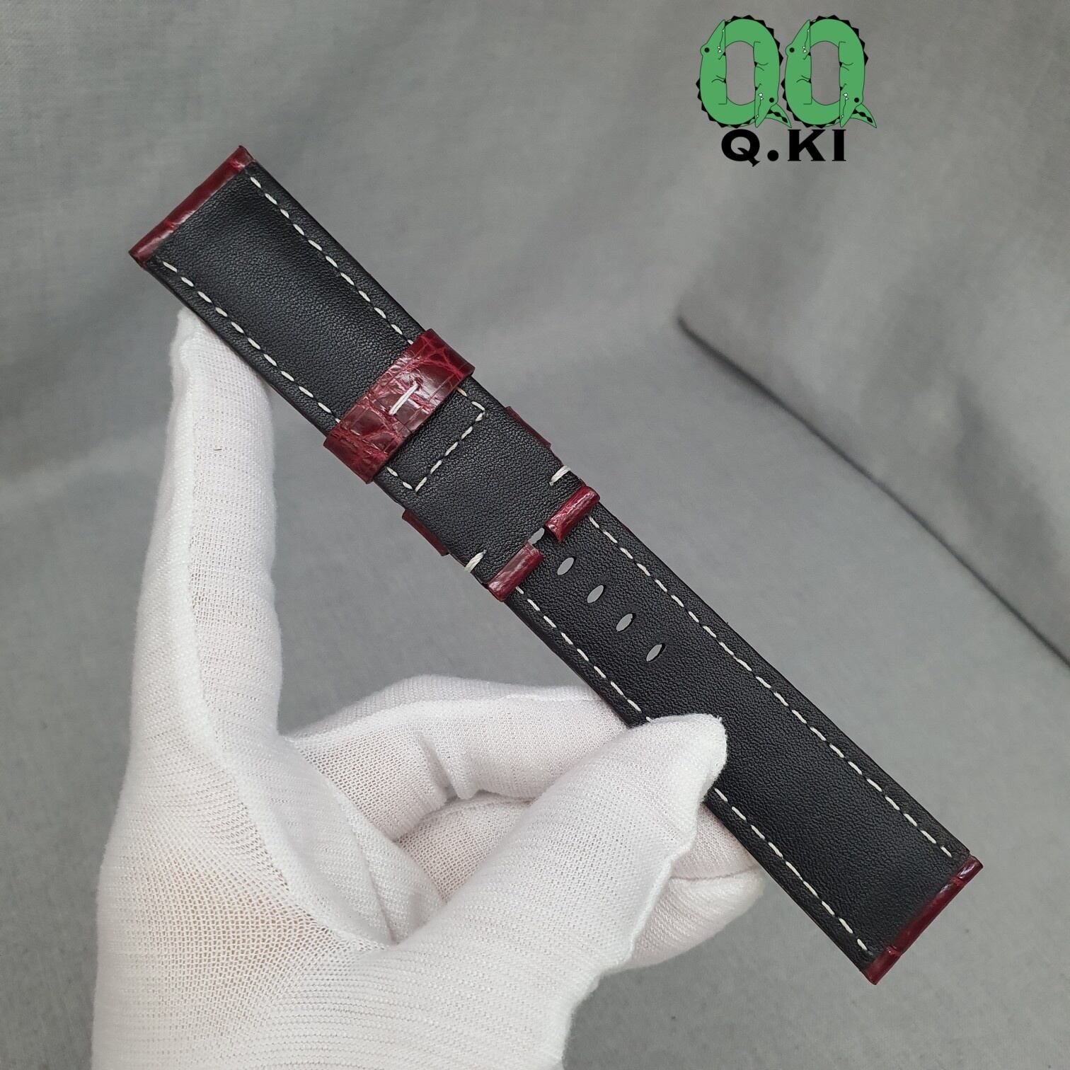 クロコダイルレザー 腕時計用ベルト 本物ワニ革 シャイニング加工 交換ベルト ワイン
