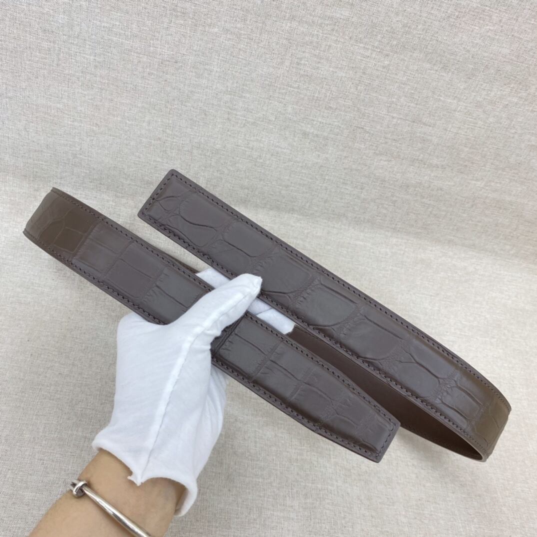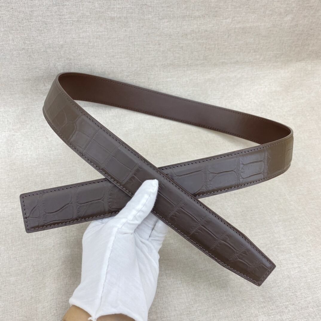 高級 クロコダイル メンズベルト 鰐革レザーベルト 貴重な一枚革 マット仕上げ 腹革 巾38ミリ 105−125cm バックルなし 茶色系1点