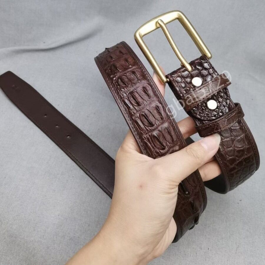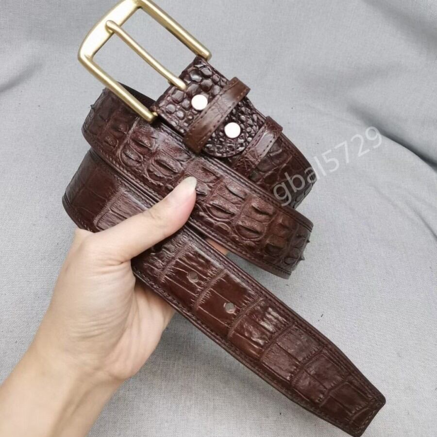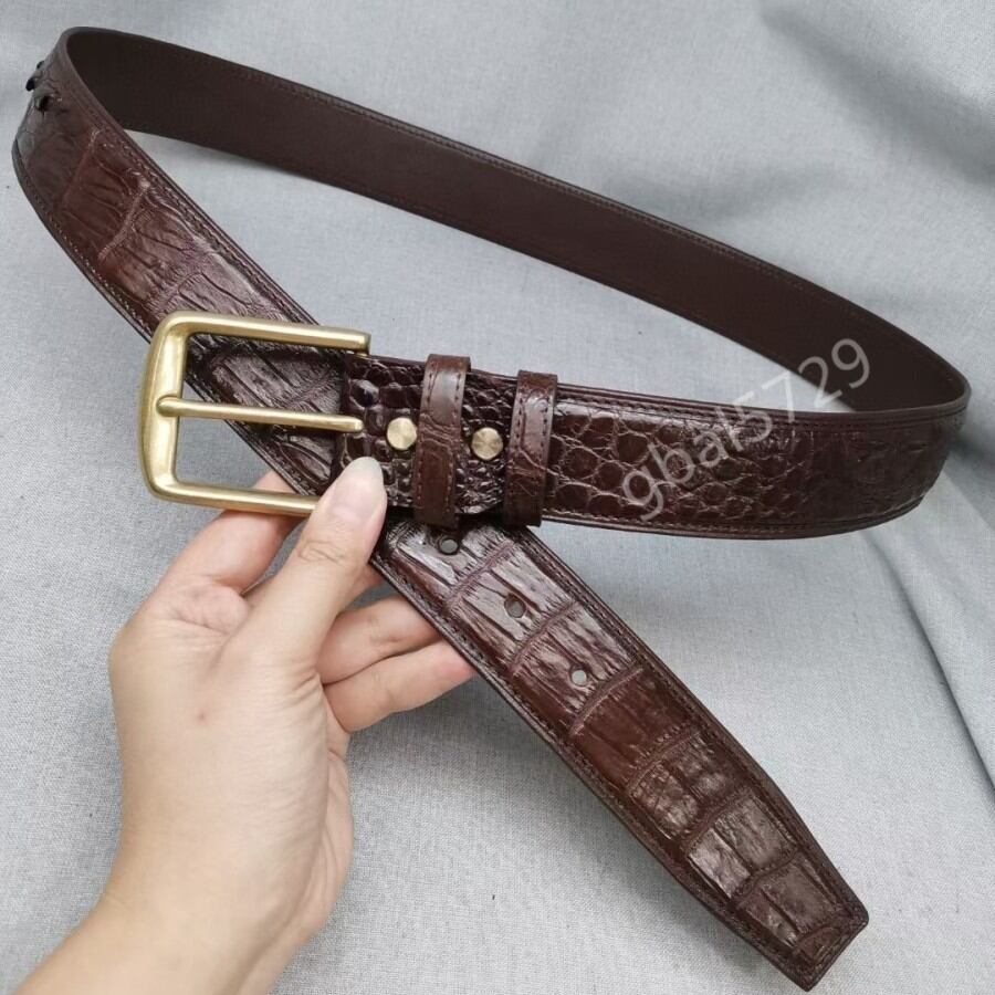 貴重な一枚革 クロコダイルレザー ワニ革保証 メンズ ベルト 本革 長さ100cm-125cm選択 巾38mm 穴あけ器付き ブラウン