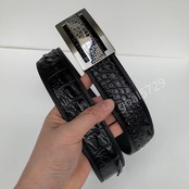 貴重品 一枚革 クロコダイルレザー ワニ革本物保証 メンズベルト サイズ調整可能 レザーベルト シルバー金具付き ピンタイプ 幅38mm 黒