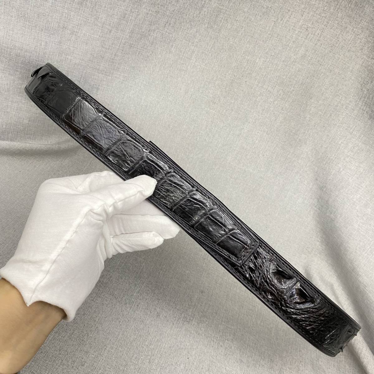 クロコダイル本物(ワニ革)のため一点ずつ模様は違います。お届け商品の模様(竹斑)は画像と多少違う場合があります、ご理解の上で落札いただければ幸いです。