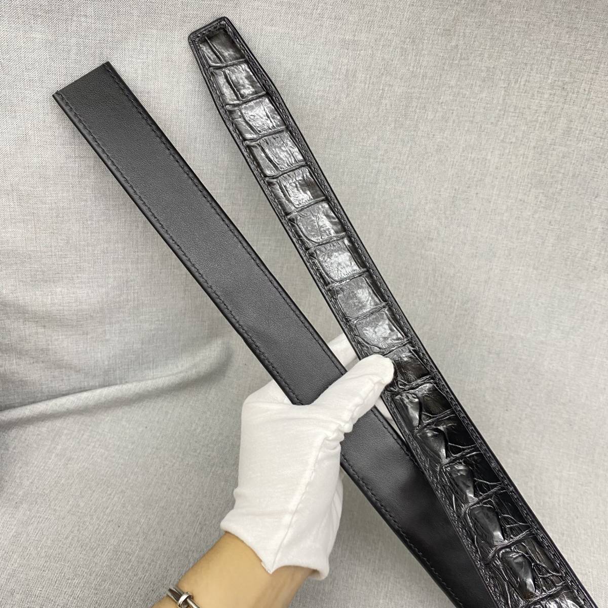新品 クロコダイル ベルト メンズベルト ワニ革本物保証 メンズ レザーベルト 銀色バックル付き 100−125cm 黒 巾3.5cm