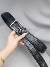 おすすめ 一枚革繋なし シャムクロコダイル レザー ワニ革保証 メンズベルト 本革 銀色金具 、 幅38mm 黒 110cm