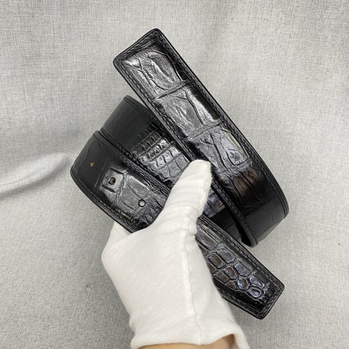 おすすめ 一枚革 繋げなし クロコダイル レザー ワニ革保証 メンズ ベルト 本革 金色バックル付き 腹革 幅38mm 黒