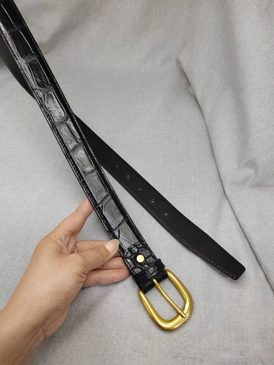 貴重な一枚革 クロコダイルレザー ワニ革保証 メンズ ベルト レザー 本革 腹革使用 ゴールド金具付き ピンタイプ 巾31mm 黒