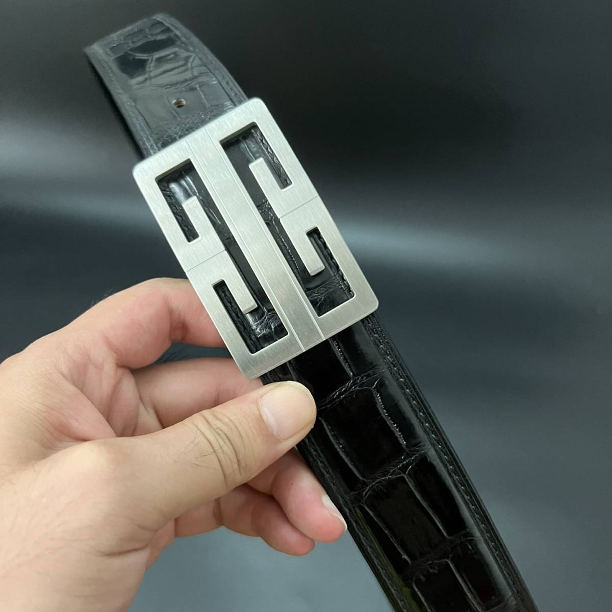 高級品 クロコダイル ワニ革レザーベルト 一枚革腹 繋ぎなし ピンタイプ 巾38ミリ シルバーバックル ◆穴あけ器付き 黒
