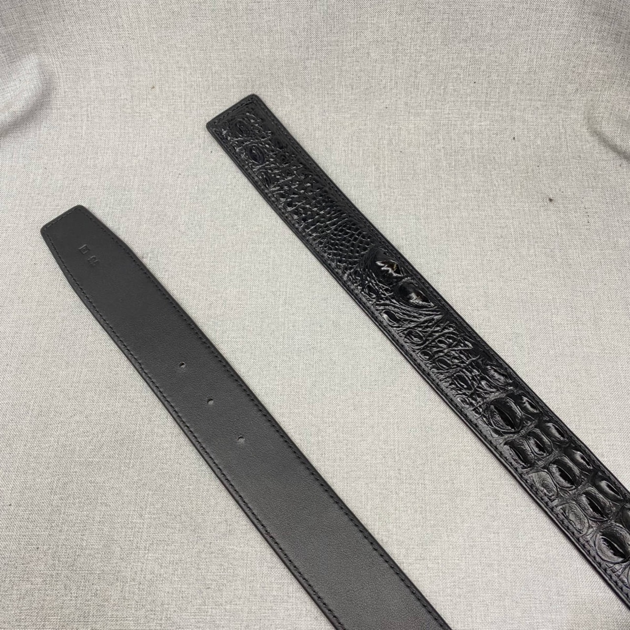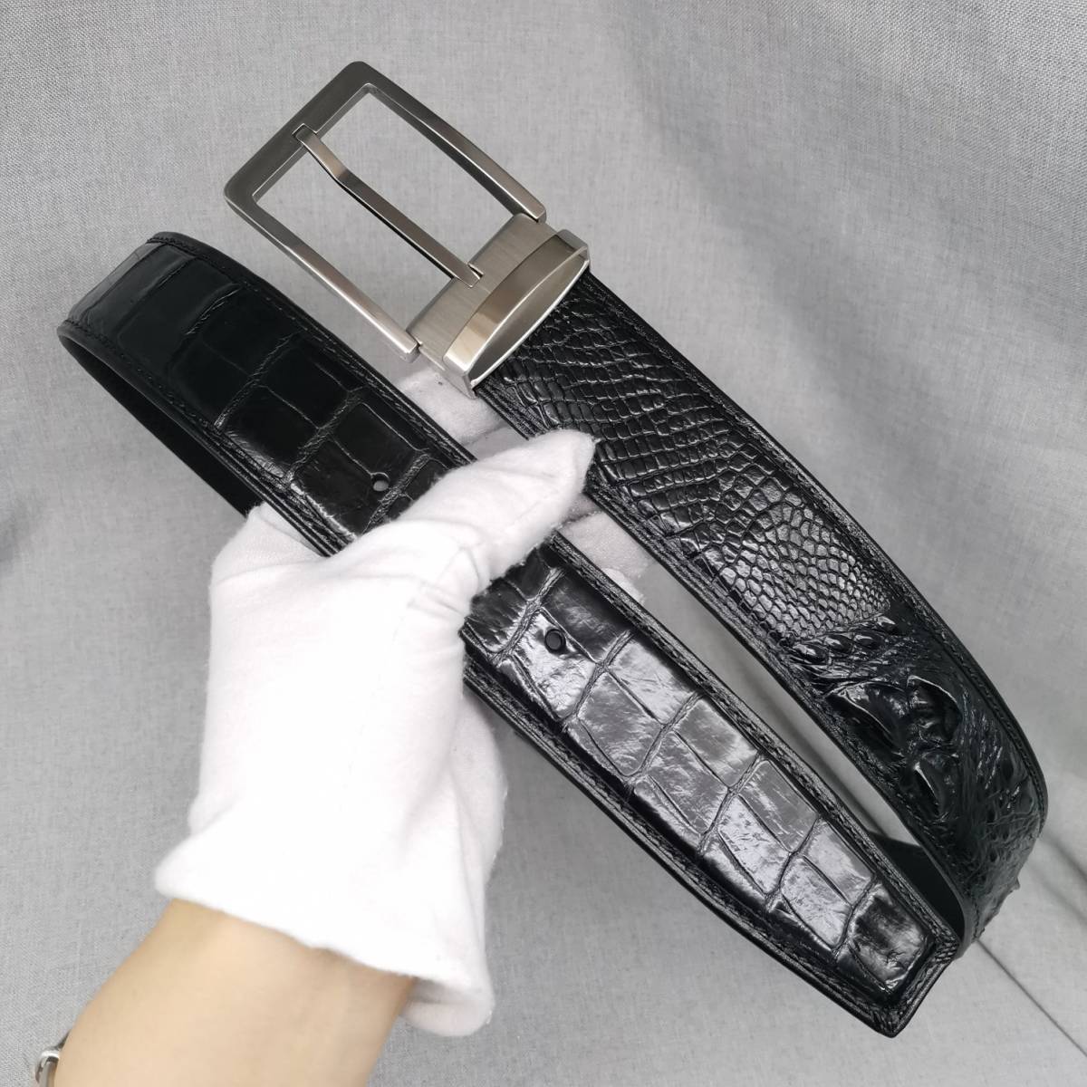 クロコダイル 総本革 ベルト ワニ革 一枚革 メンズベルト 黒 スチールバックル 巾38mm 男性用 穴あけ器付き 銀色バックル