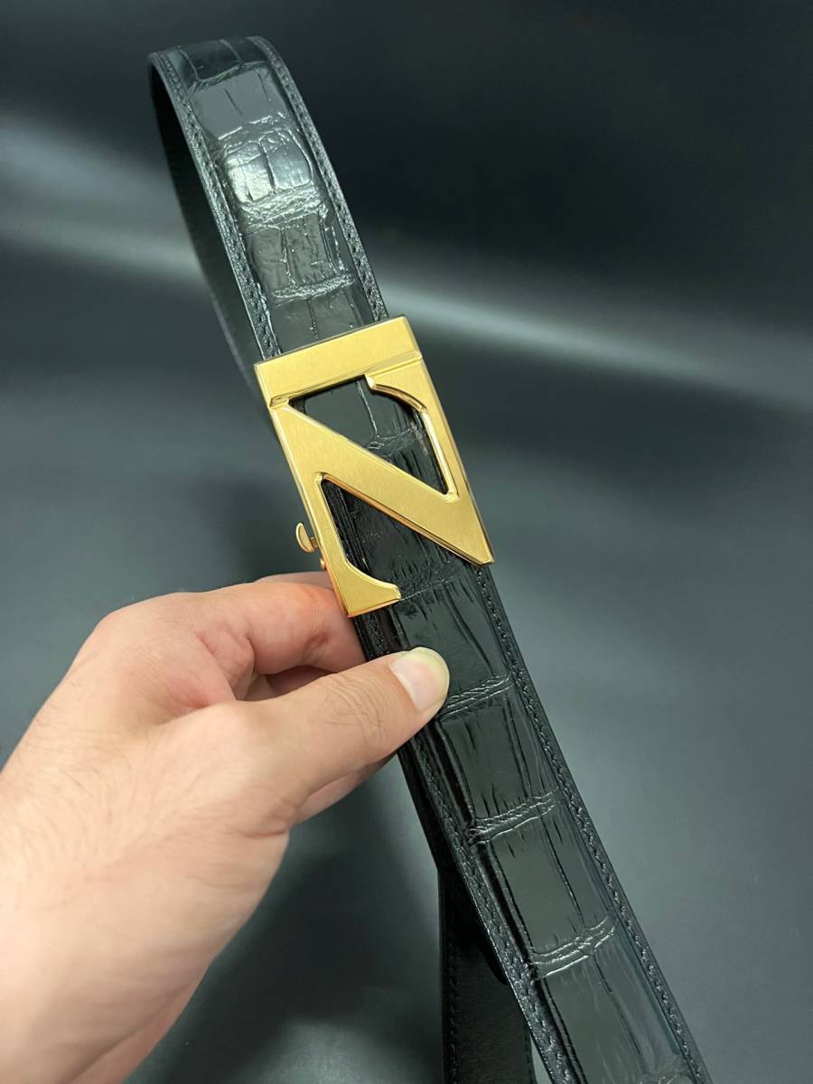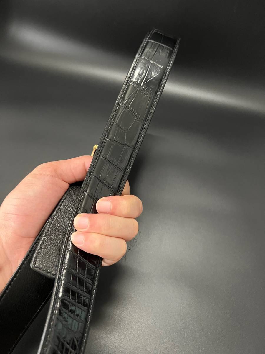 クロコダイル 紳士用ベルト 腹革使用 ワニ革 総本革 一枚革 メンズベルト スチールバックル ゴールド プレゼント 黒