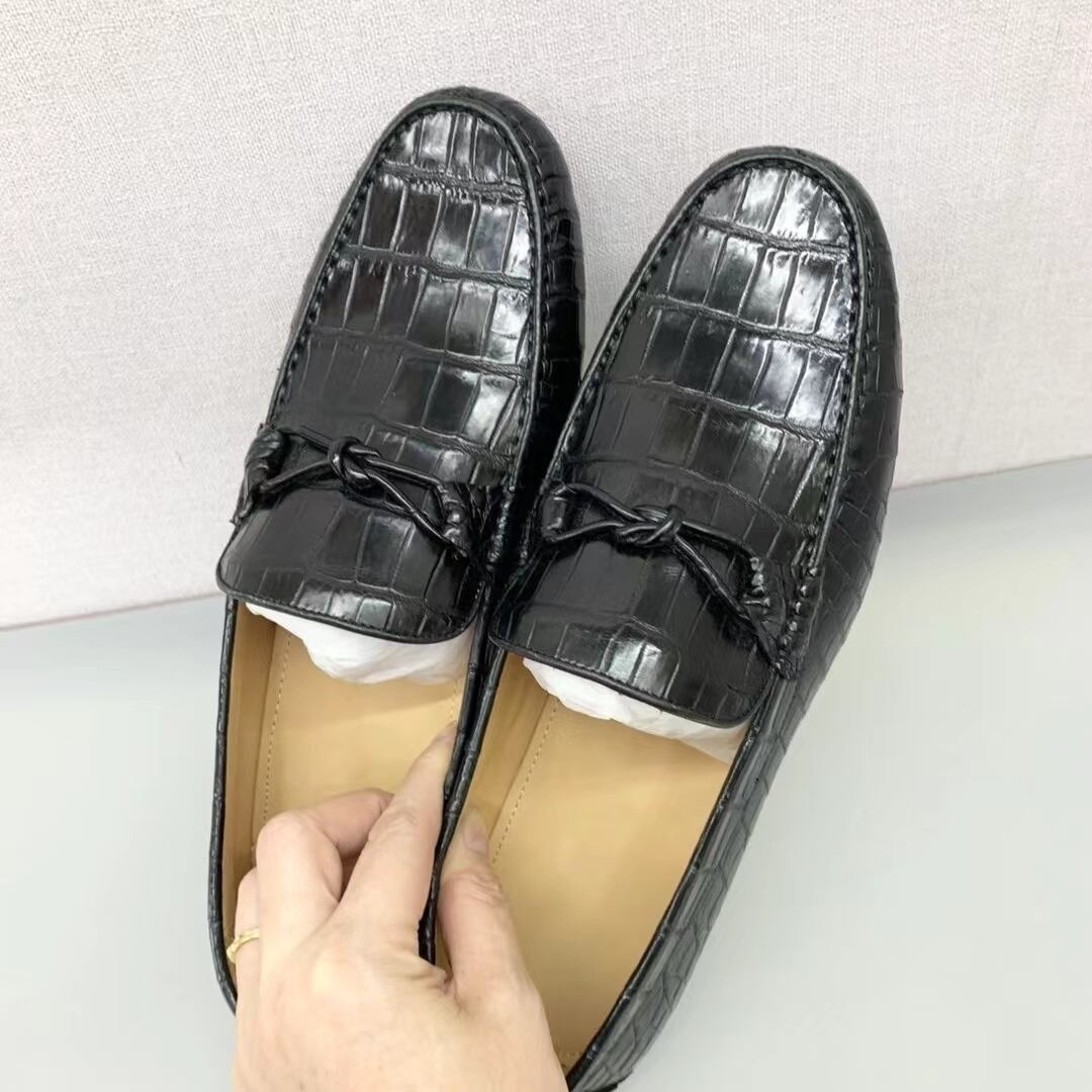 柔らかいクロコダイル 紳士靴 ビジネスシューズ メンズシューズ 男性靴 25.0−27.0cmワニ革/本革/腹革 ローファースリッポン ブラック