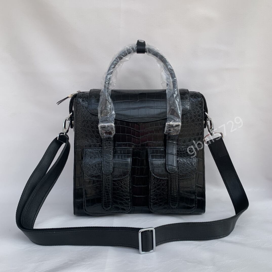 新作 クロコダイルレザー ワニ革保証 大容量 2wayショルダーバッグ 手提げビジネスバッグ 多機能 メンズバッグ 通勤 黒
