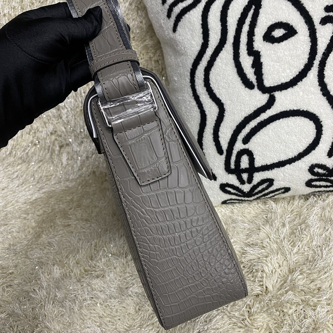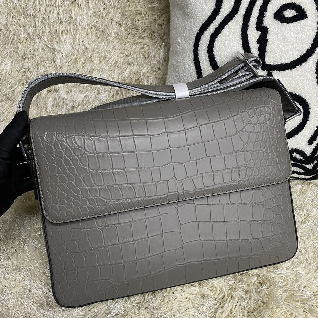 新品 最高級 30万◆最上級クロコダイル*ショルダーバッグ マット仕上げ センター取り 肚革 ワニ革 メンズバッグ 通勤 グレー