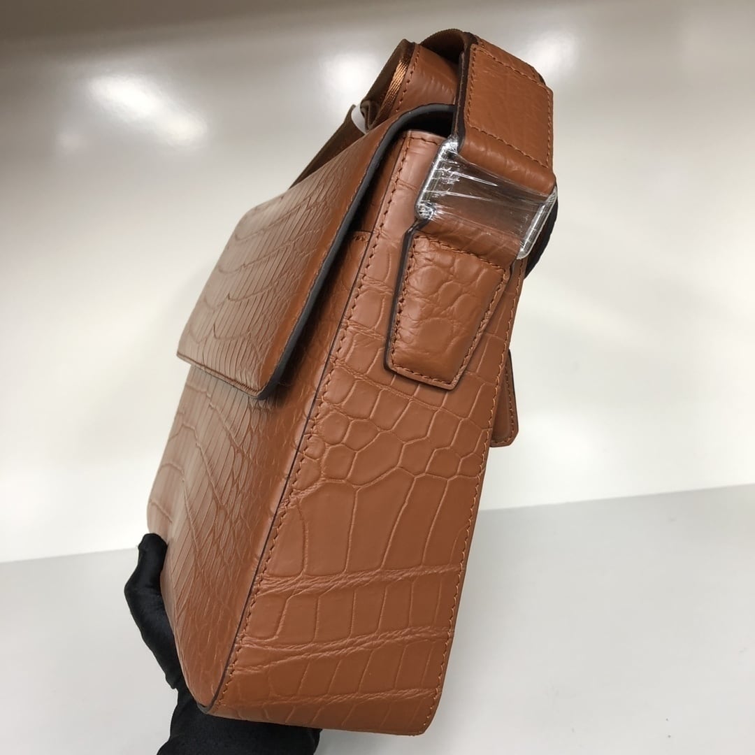 新品 最高級 30万◆最上級クロコダイル*ショルダーバッグ マット仕上げ センター取り 肚革 ワニ革 メンズバッグ 通勤 ブラウン