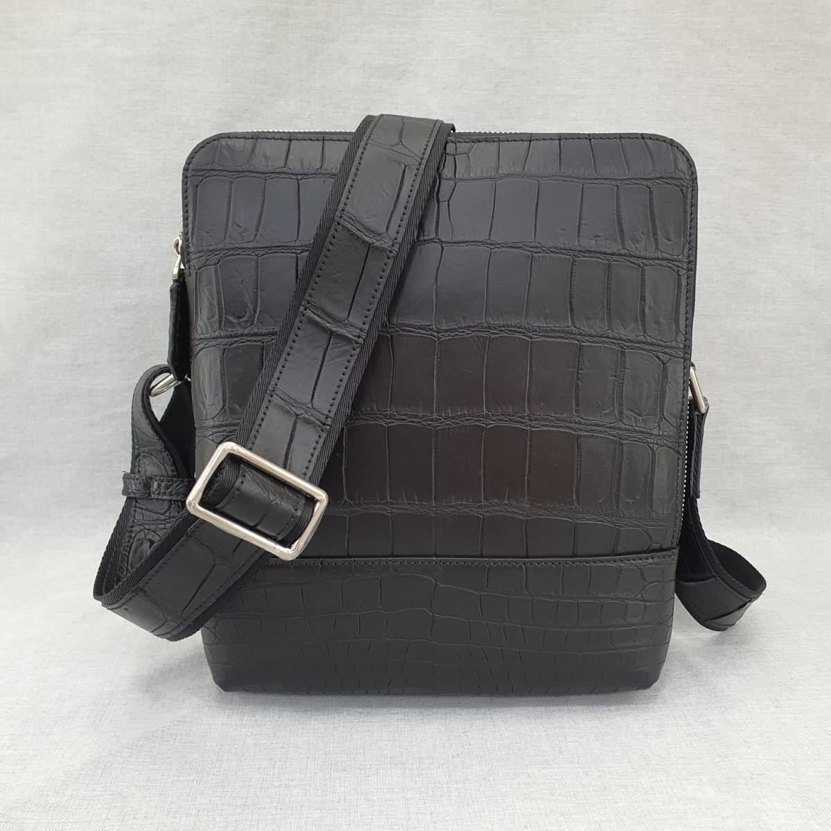 ワニ革 マット仕上げ ナイルクロコダイル ショルダーバッグ/ボディバッグ/紳士鞄 メンズバッグ 斜め掛け 本革 腹部革 多機能 上質 黒