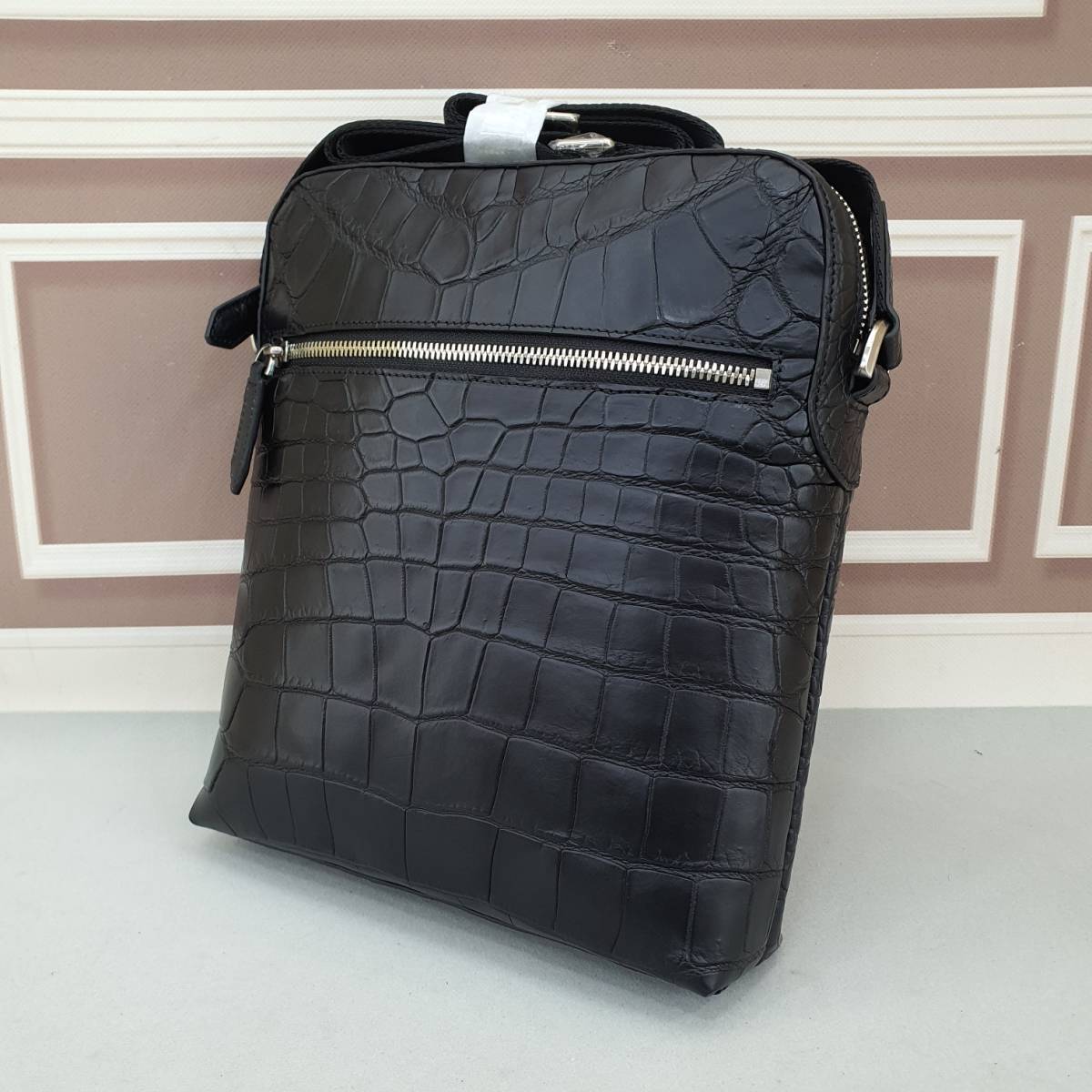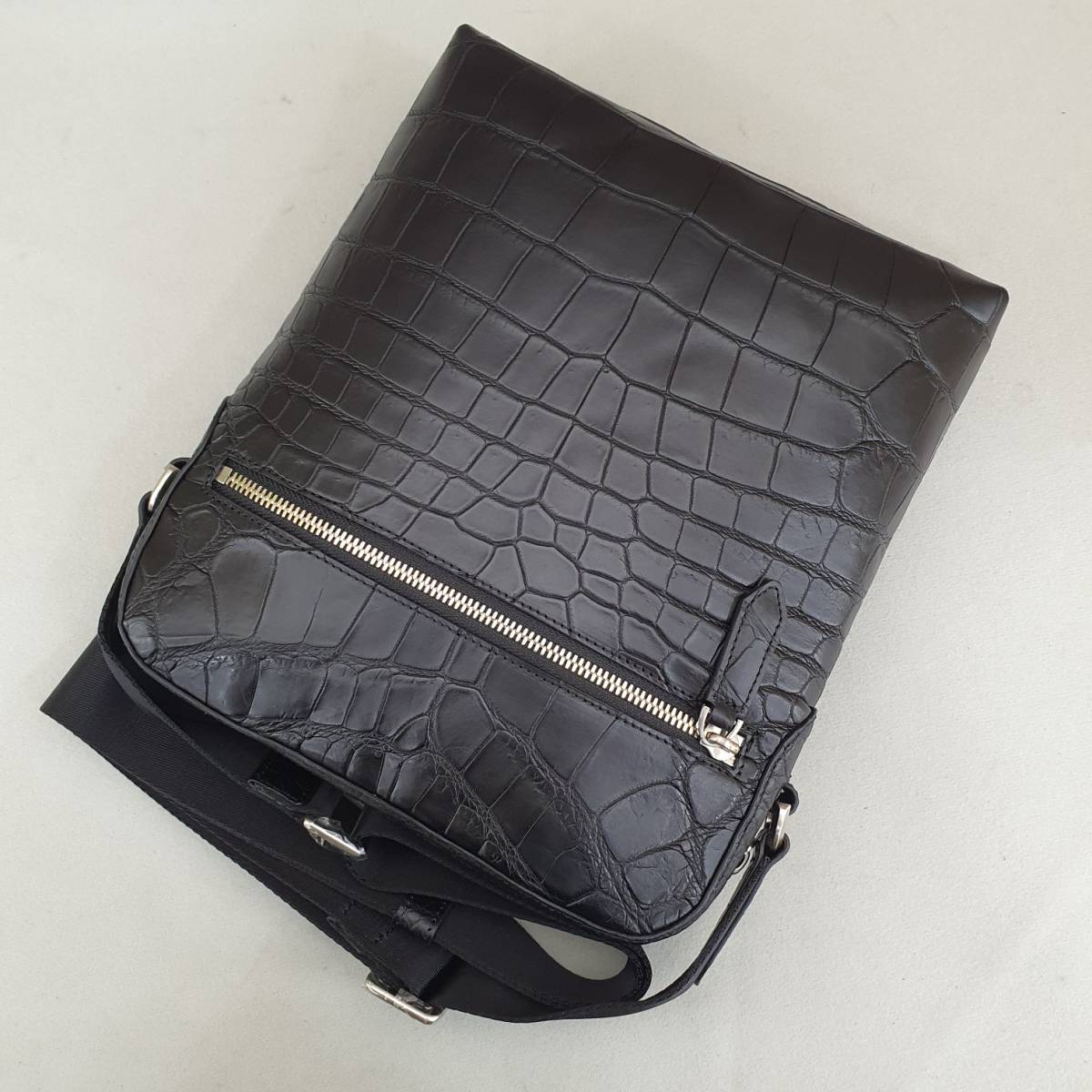 ナイルクロコダイル 柔らかい 本革 ワニ 革●ショルダー バッグ●黒●斜め掛け●かばん●マット仕上げ ブラック