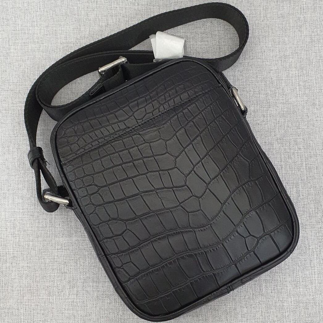 ナイルクロコダイル マット仕上げ 斜め掛け■ショルダー バッグ■レザー 鰐革本物 クロコ■メンズバッグ ミニサイズ 黒