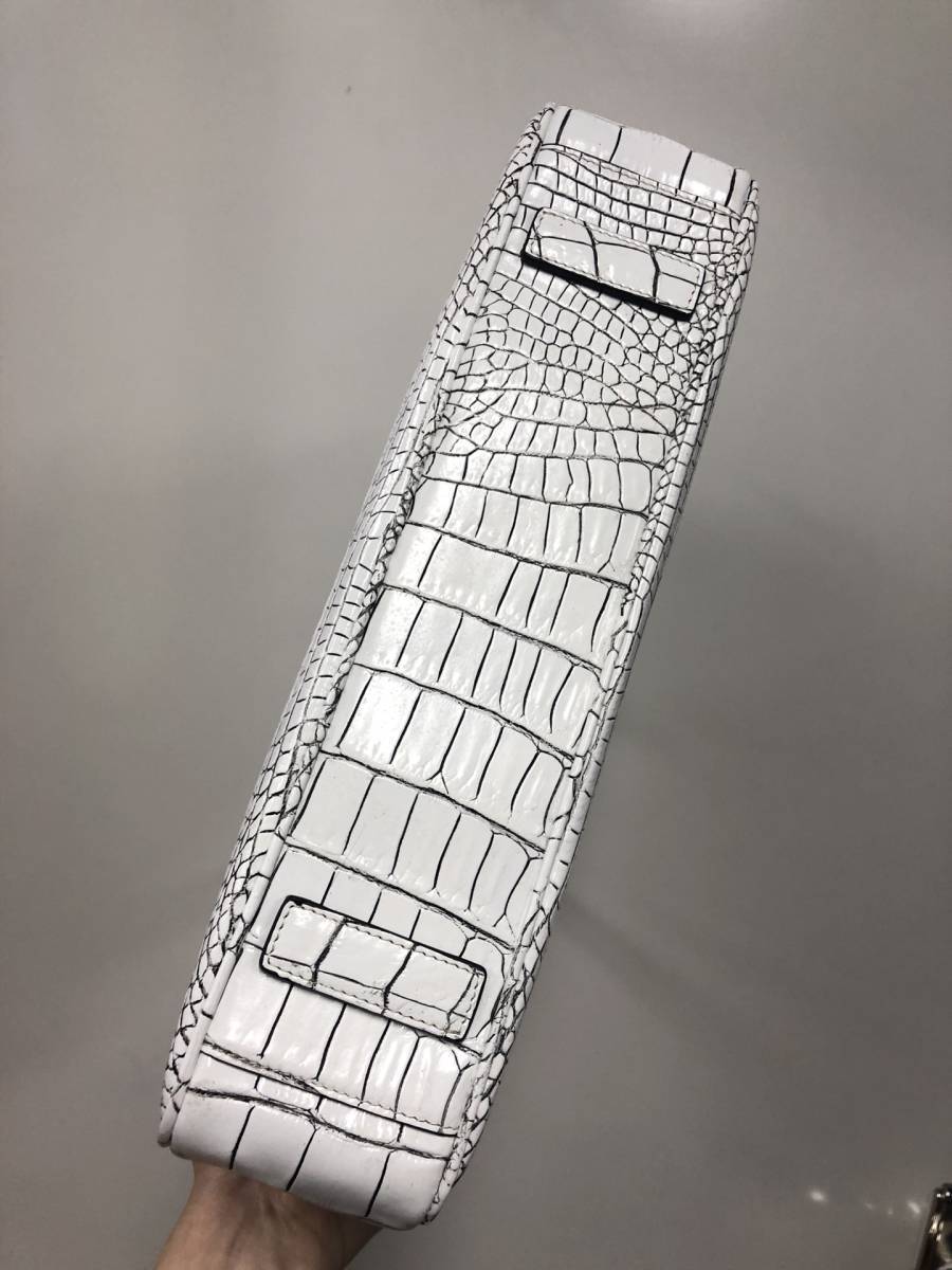 高品質 バニラ 定価80万円超 極上品 クロコダイルレザー バッグ ワニ革ビジネス ハンドバッグ センター取り 肩掛け用のベルト付き