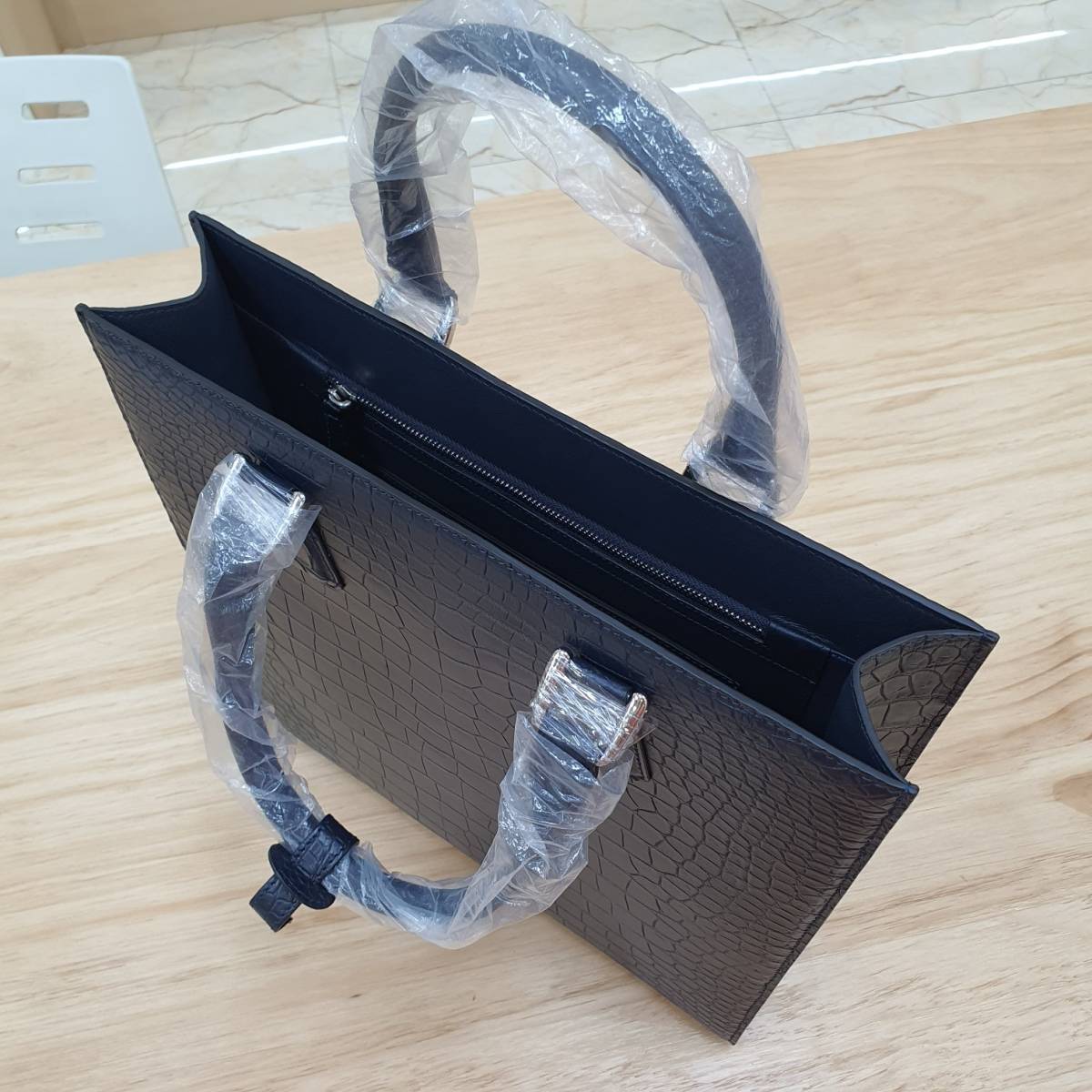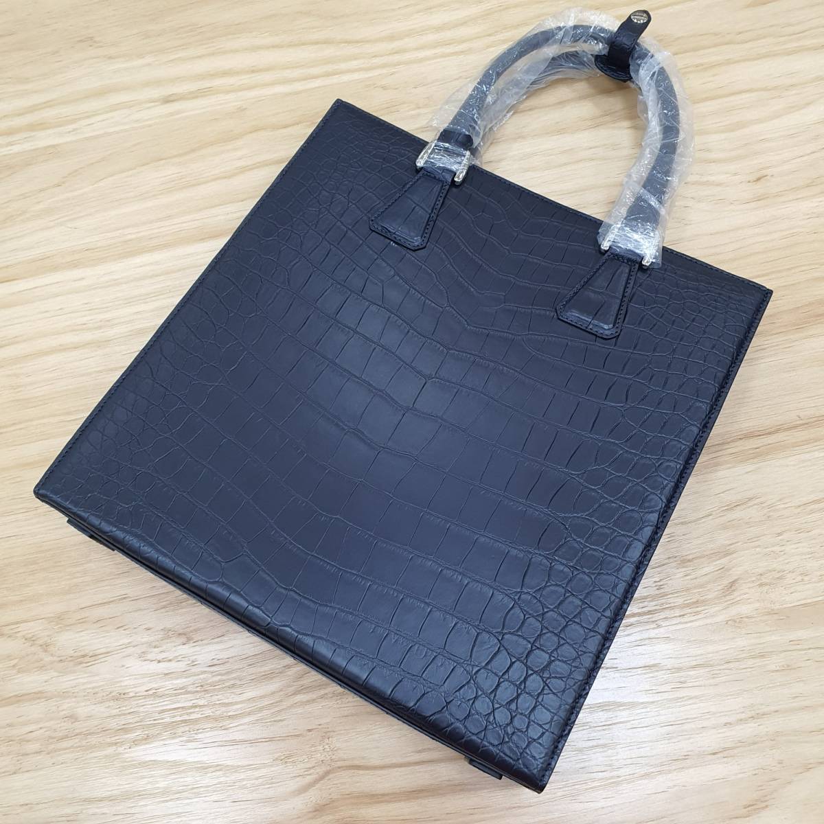 定価50万円超 高級ナイルクロコダイル ワニ革 腹革使用 マット仕上げビジネスバッグ 手提げ ハンドバッグ 紺