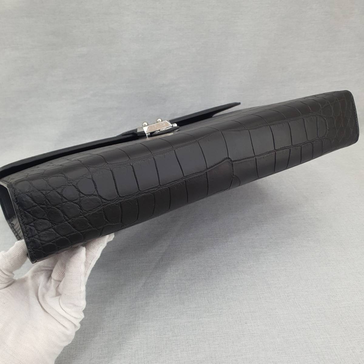 ナイルクロコダイル 一生のモノ 天然ワニ革 マット加工 腹革使用 美品コブ メンズ ビジネスバッグ ハンドバッグ 黒 モデル②