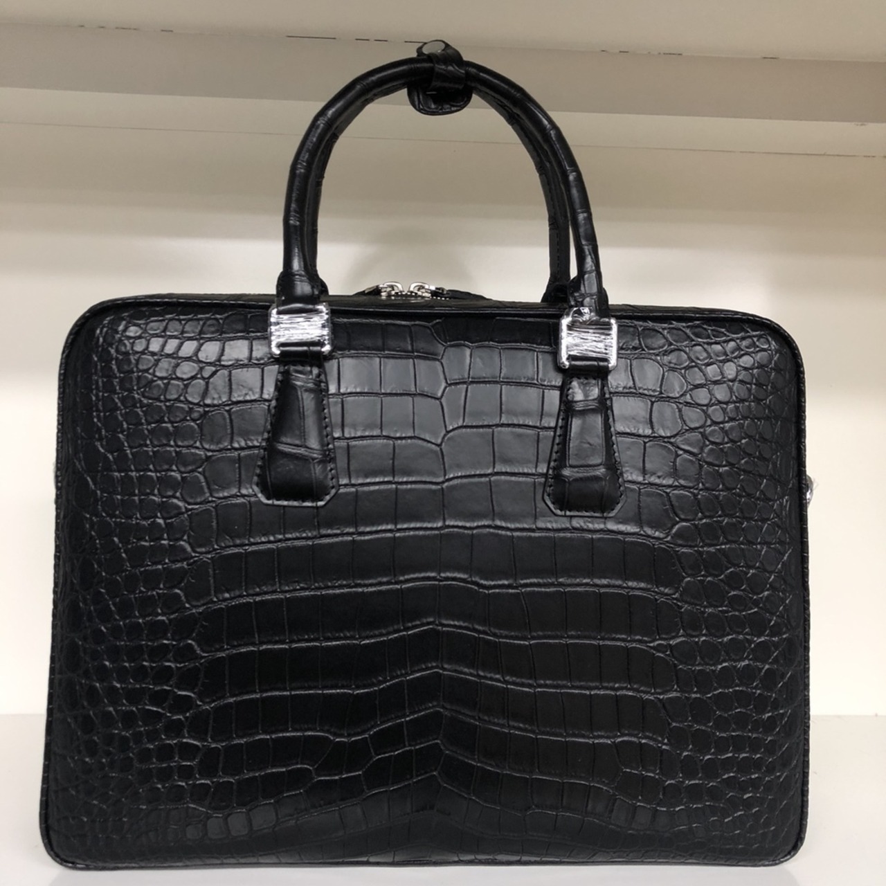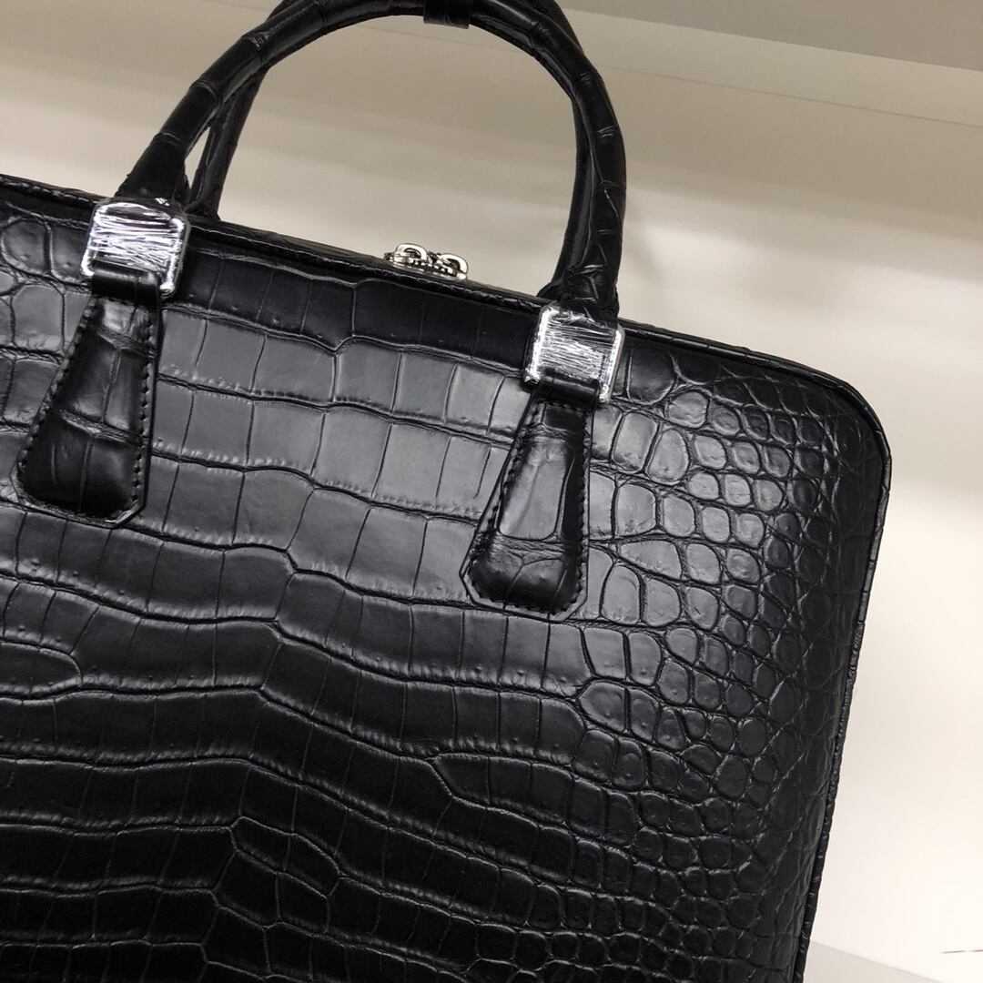 極上品 定価80万円超 クロコダイルレザー バッグ ワニ革ビジネス ハンドバッグ センター取り 肩掛け用のベルト付き ブラック