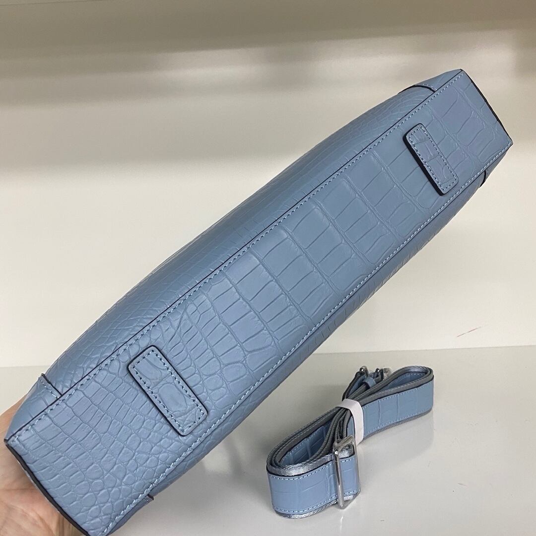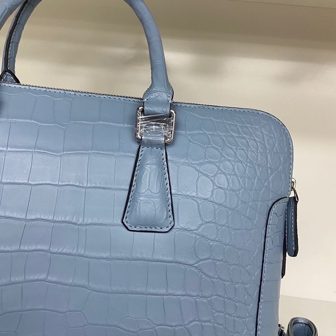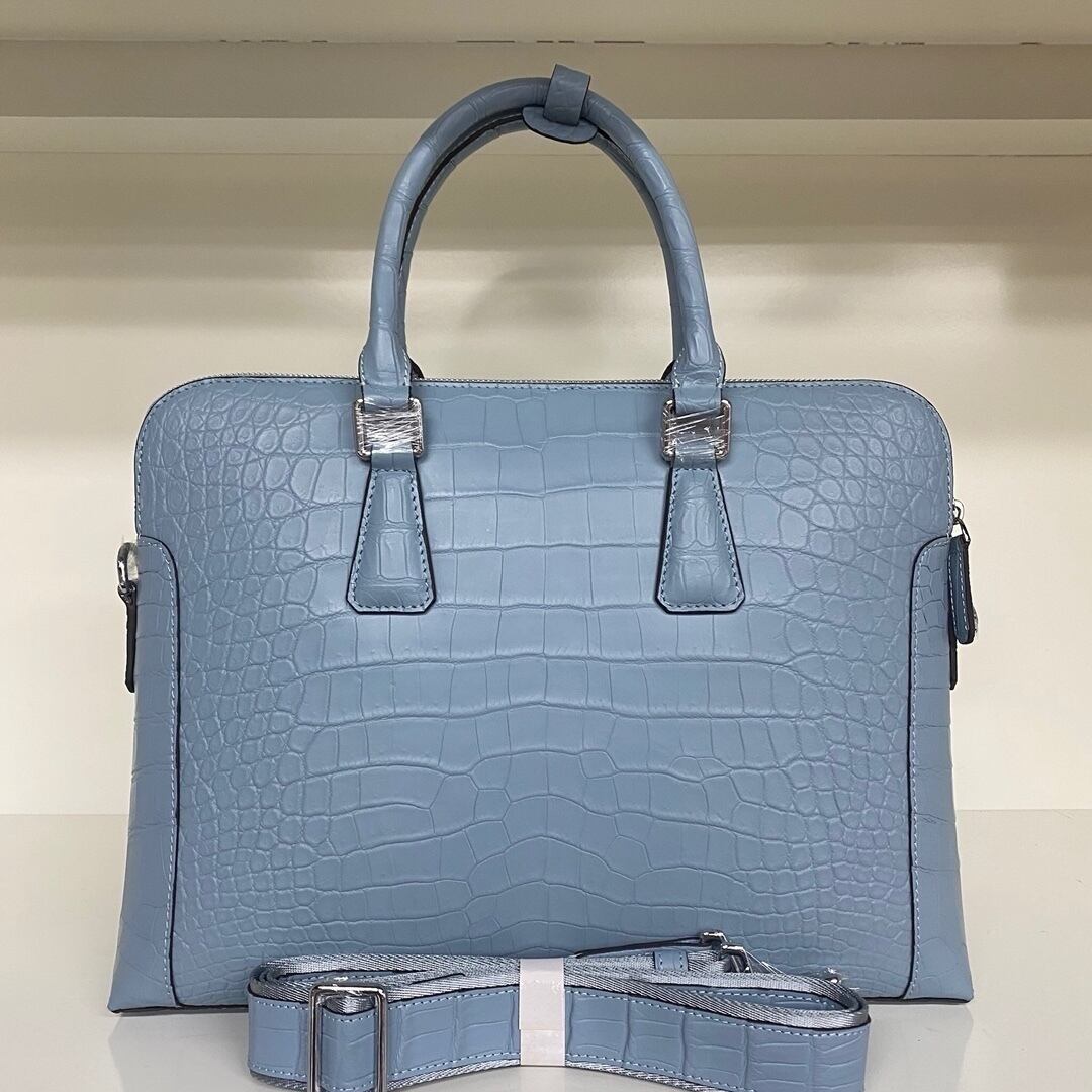 高級 クロコダイル ショルダーバッグ ワニ革 ビジネスバッグ ハンドバッグ ダブルファスナー腹皮センター取り ブルー