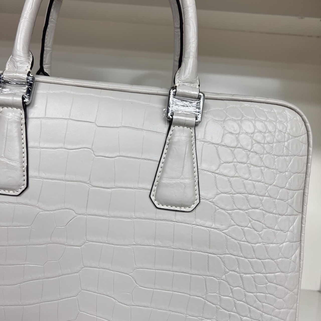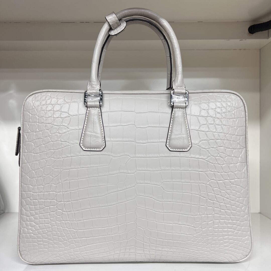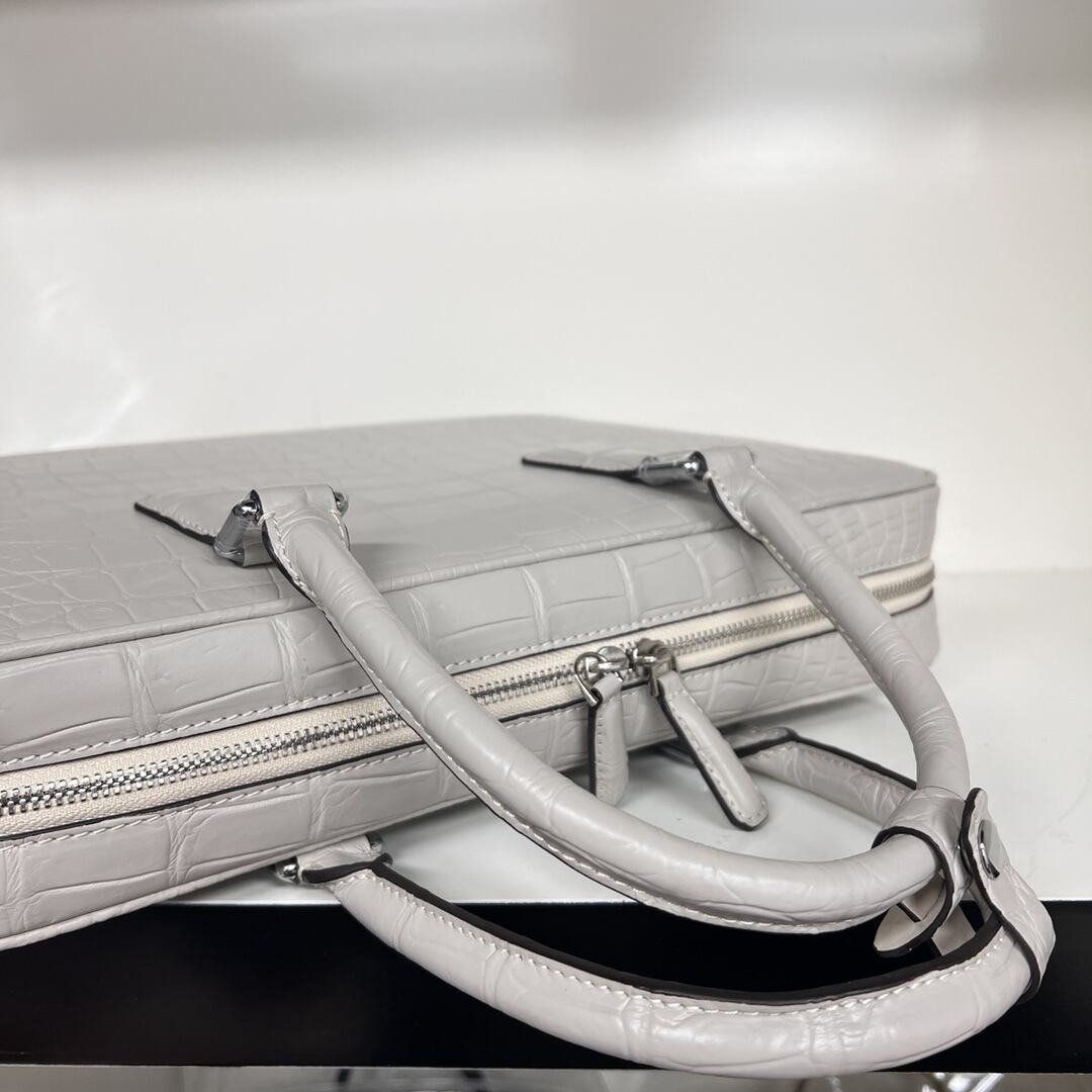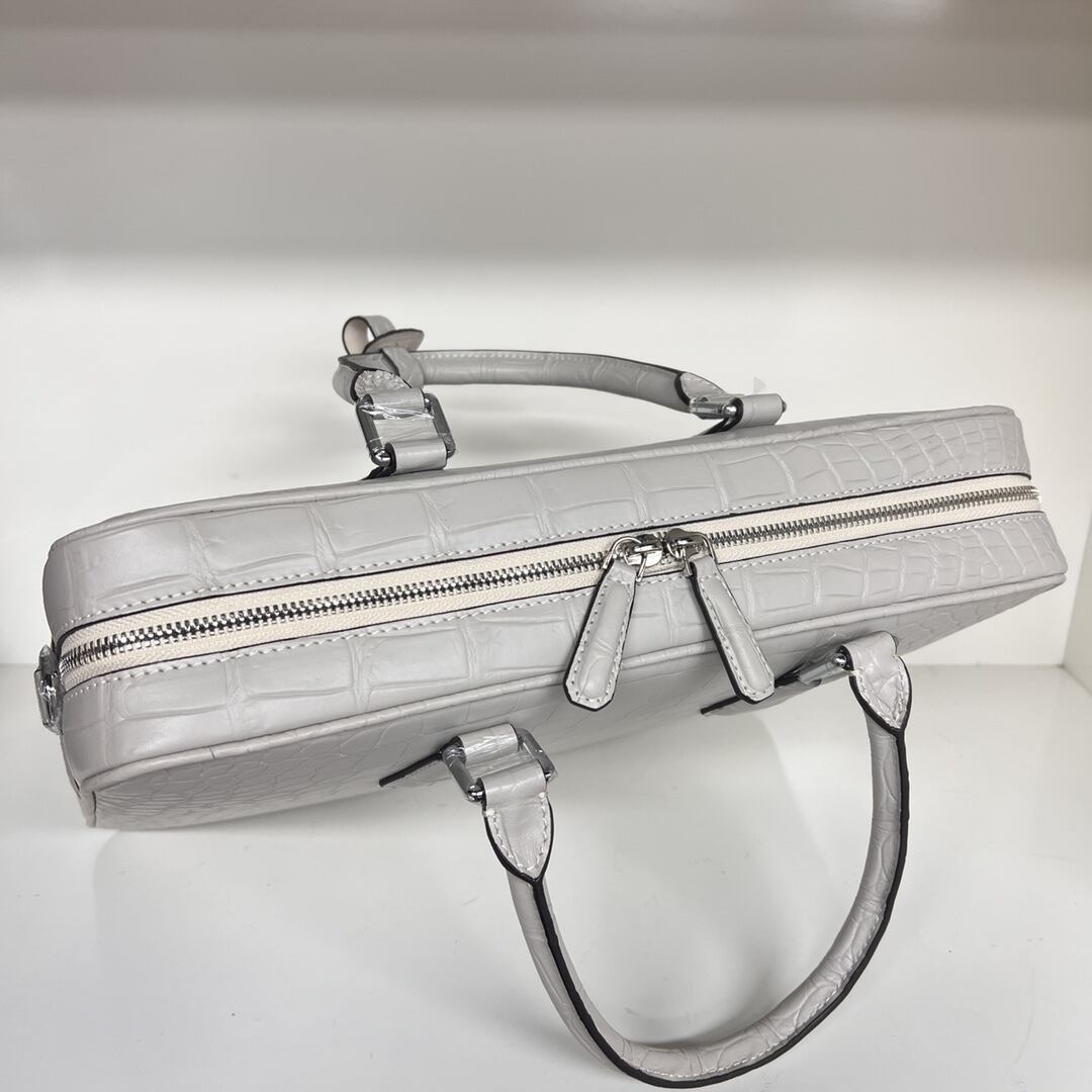 極上品 定価80万円超 クロコダイルレザー バッグ ワニ革ビジネス ハンドバッグ センター取り 肩掛け用のベルト付き 浅いグレー