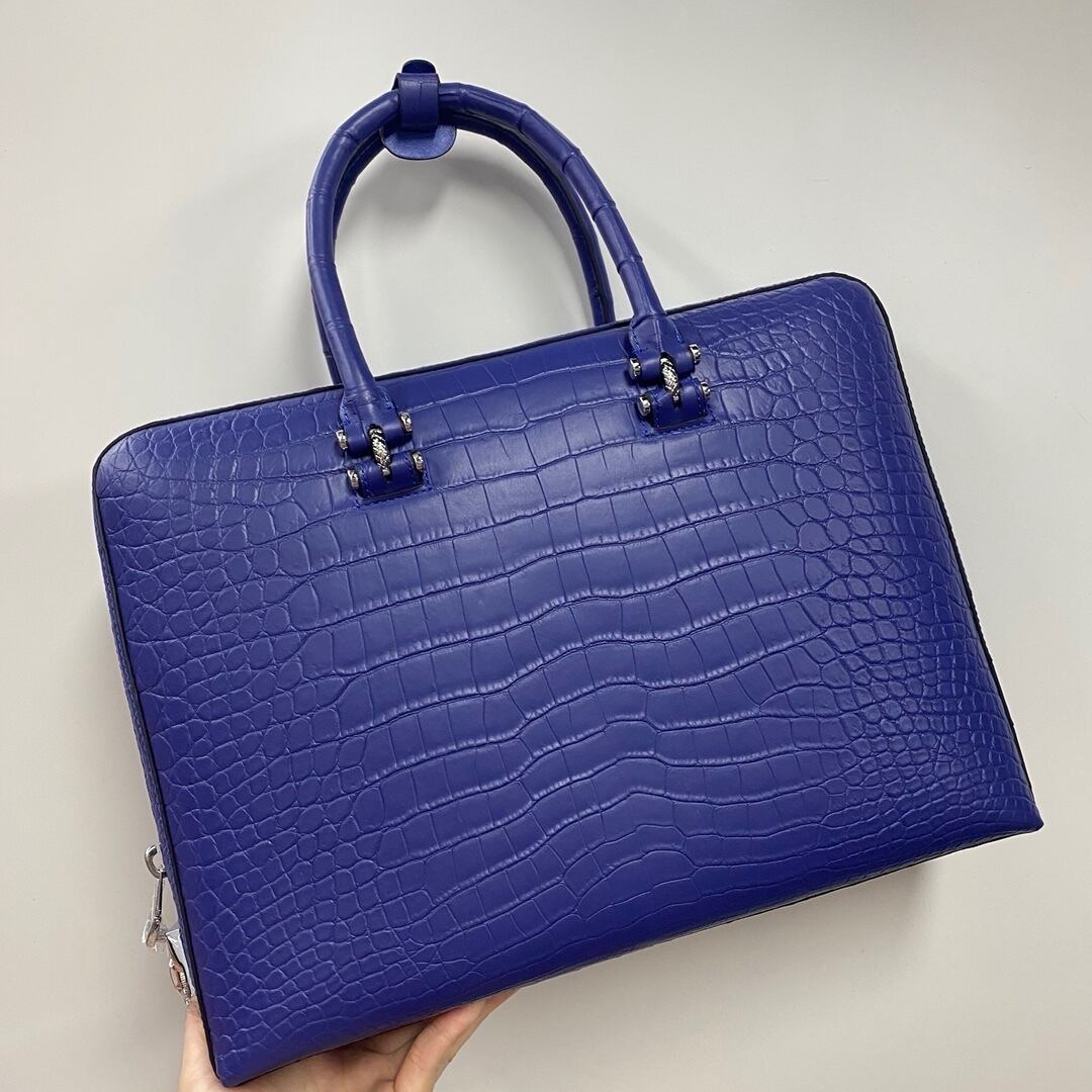ひと際目立つ!高級 クロコダイル ワニ革 腹革使用 マット仕上げビジネスバッグ 手提げ ハンドバッグ 紺