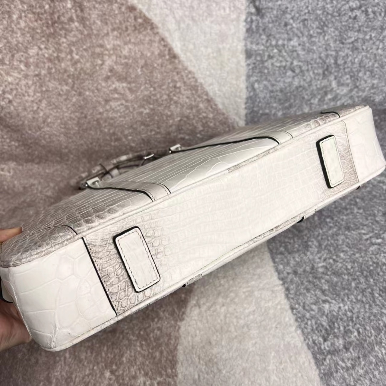新入荷 ヒマラヤホワイト クロコダイル レザー ワニ革 メンズ 本革 ブリーフケース 旅行通勤用 ビジネスバッグ 鞄 ハンドバッグ A4/PC対応