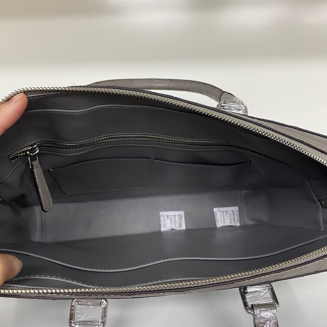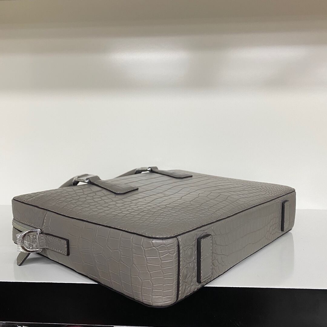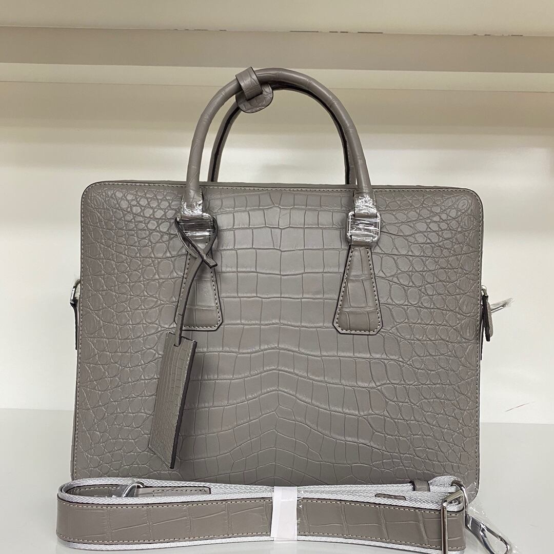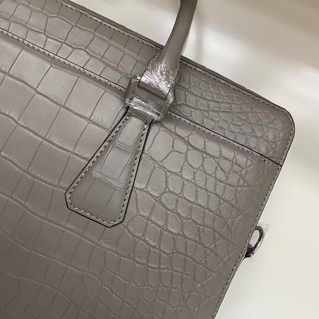 定価20万円超 クロコダイル ワニ革 本革レザー 腹革 ビジネス 手提げ 鞄 A4/PC対応 肩掛け用のベルトあり メンズ ハンドバッグ グレー