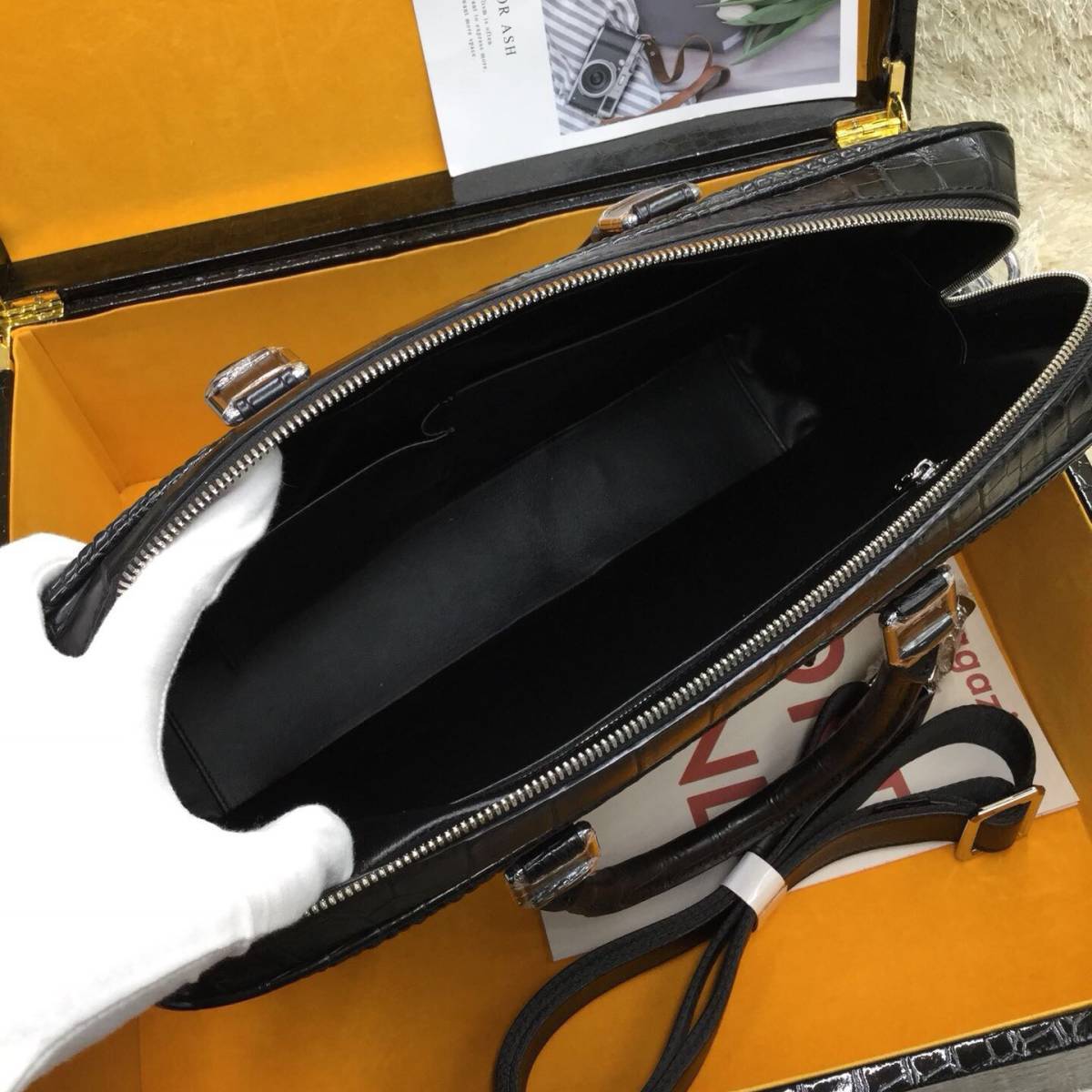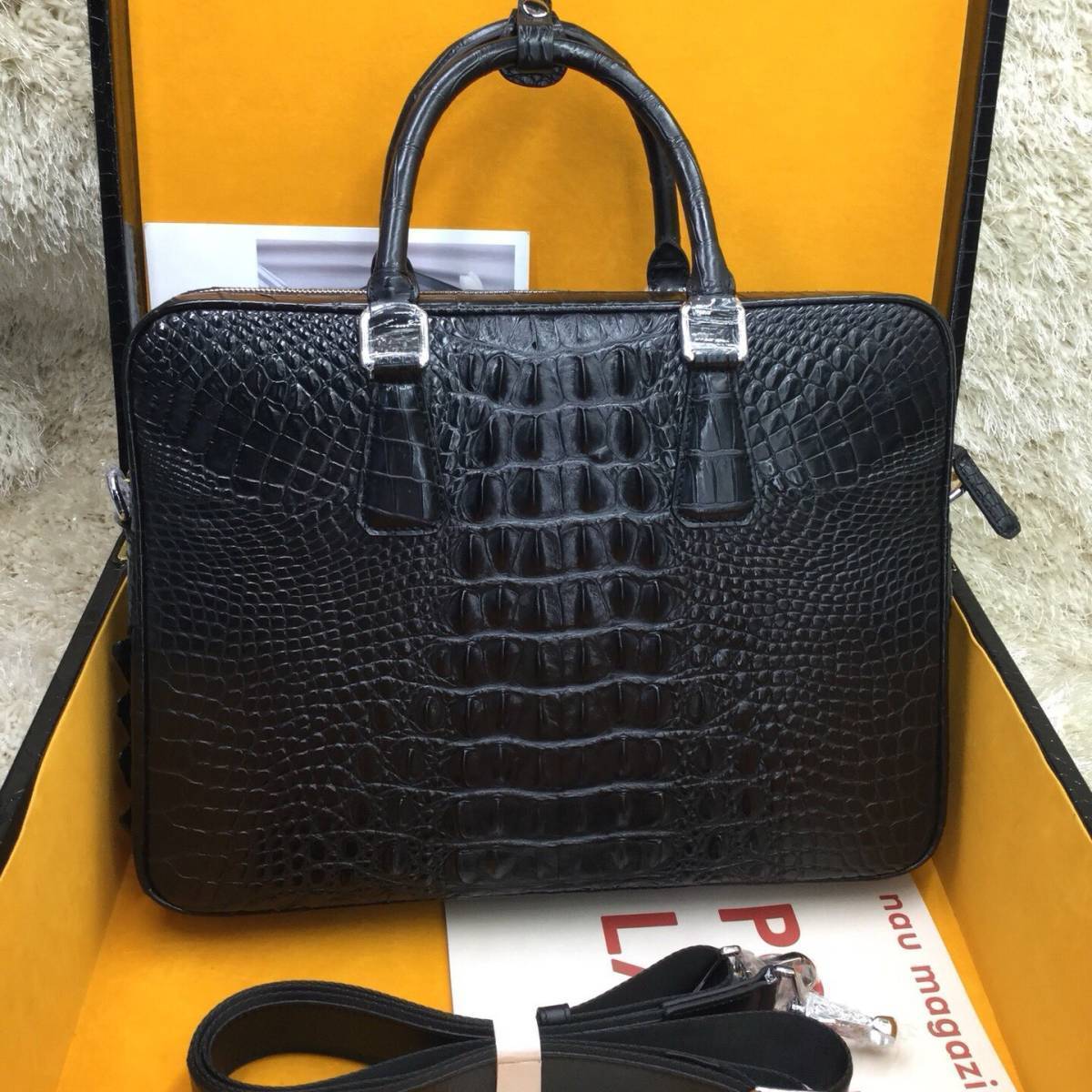 クロコダイル本物(ワニ革)のため一点ずつ模様は違います。お届け商品の模様(竹斑)は画像と多少違う場合があります、ご理解の上で落札いただければ幸いです。
