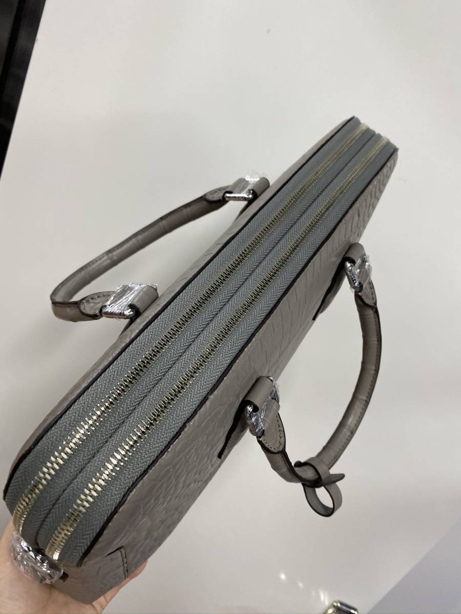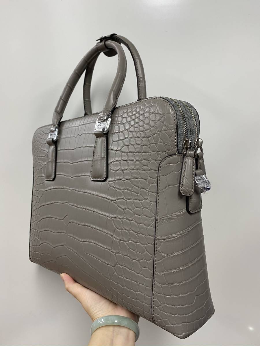 定価約30万円が極得 クロコダイル ショルダーバッグ ワニ革 ビジネスバッグ ハンドバッグ ダブルファスナー腹皮センター取り ダックグレー