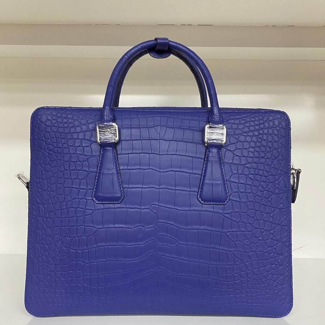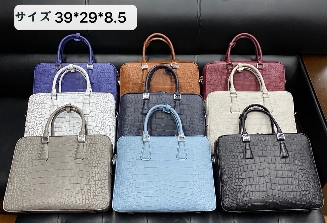 定価20万円超 クロコダイル ワニ革 本革レザー 腹革 ビジネス 手提げ 鞄 A4/PC対応 肩掛け用のベルトあり メンズ ハンドバッグ ブルー