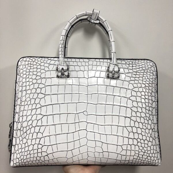 美品 完璧 クロコダイルレザー ワニ革保証 メンズバッグ ビジネスバッグ ハンドバッグ ブリーフケース A4書類かばん バニラ 大容量