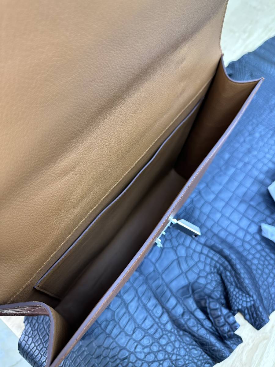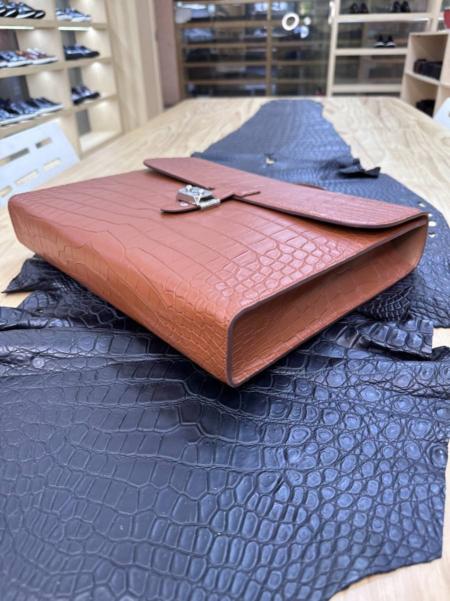一生のモノ ナイルクロコダイル ワニ革 マット加工 腹革使用 美品コブ メンズ ビジネスバッグ A4/PC対応 ハンドバッグ ブラウン