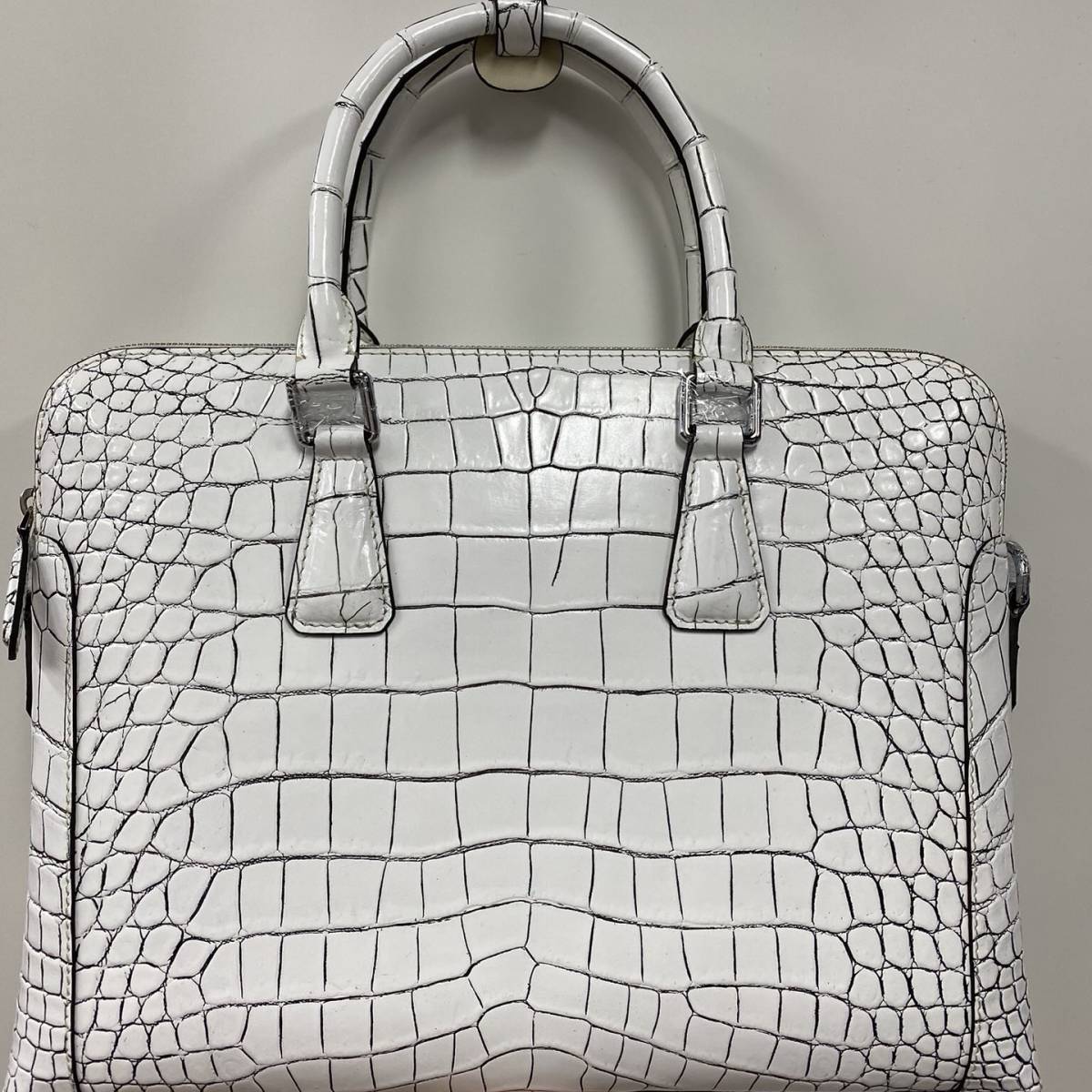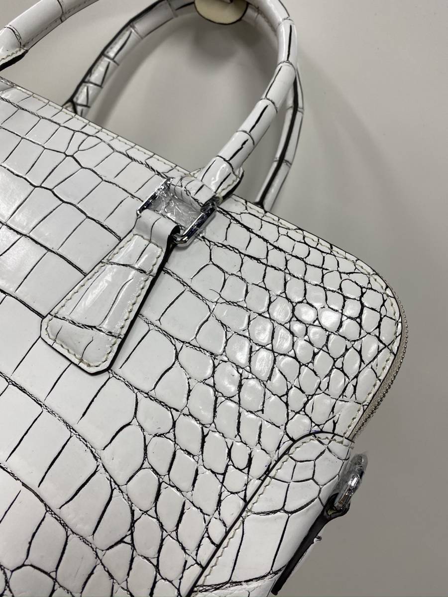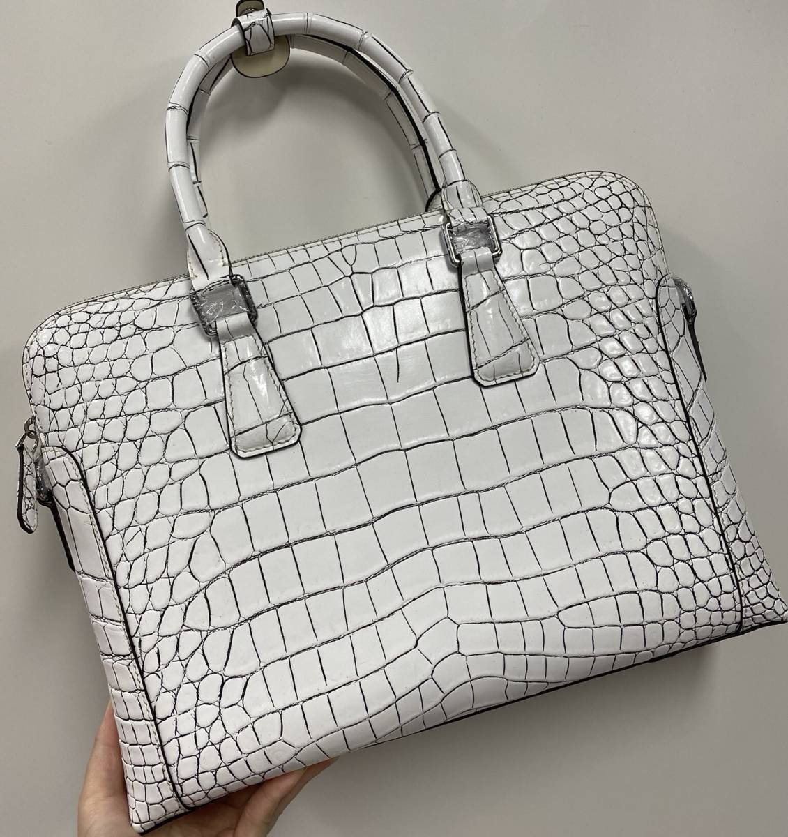 最高級 バニラ クロコダイル ショルダーバッグ ワニ革 ビジネスバッグ ハンドバッグ ダブルファスナー腹皮センター取り