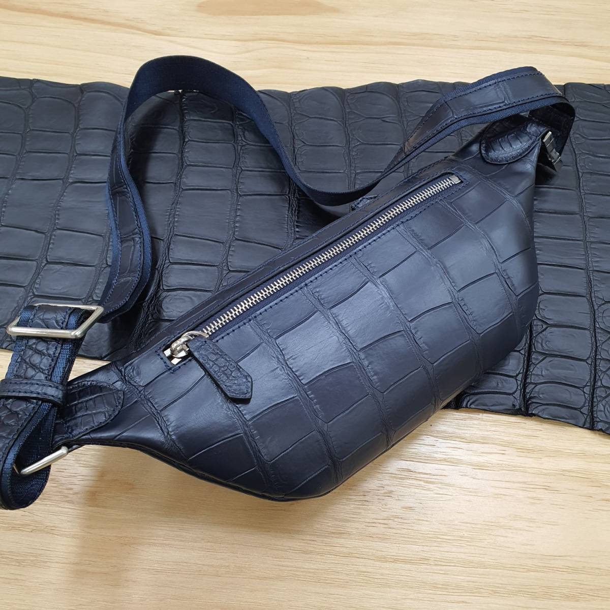 人気 クロコダイル マット加工 レザー ウエストバッグ ワニ革 レア 本革 鞄 ウエストポーチ メンズバッグ 多機能 腹部革使用 紺