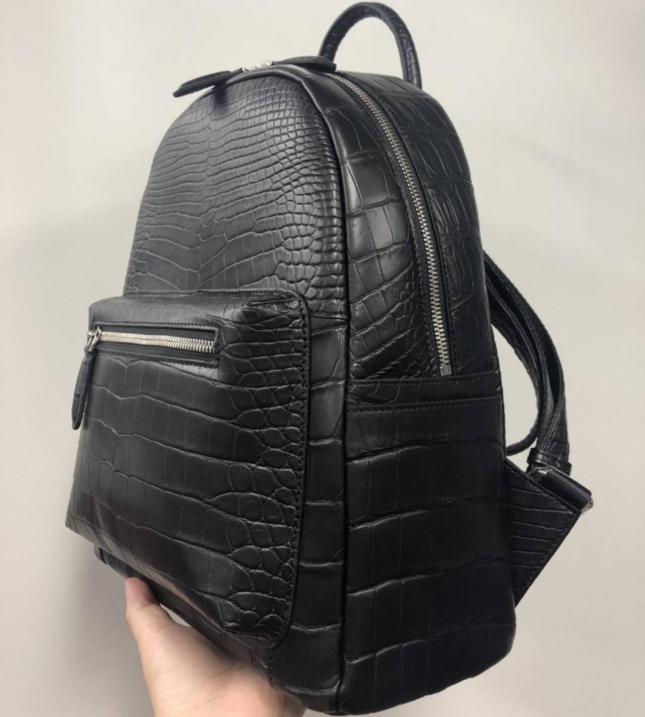 特撰上質 クロコダイル 天然ワニ革 腹革センターカット バッグ リュックサック デイパック 綺麗革 黒 未使用