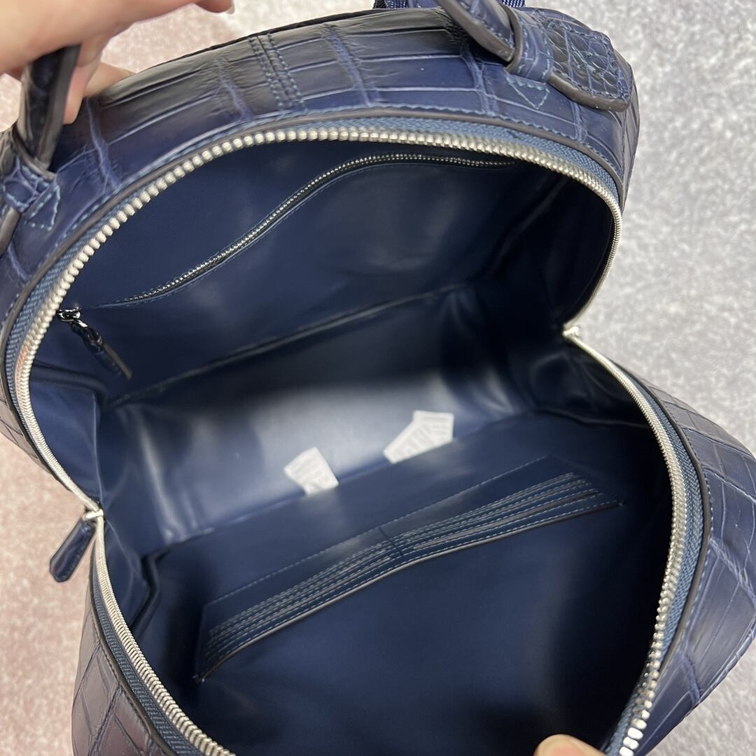 上質クロコダイルレザー ワニ革 腹革使用 リュックサック/デイパック 大容量 旅行/出張/通勤 メンズバッグ 男性用 鞄かばん 紺