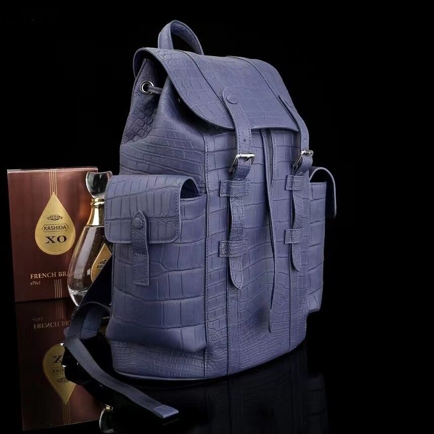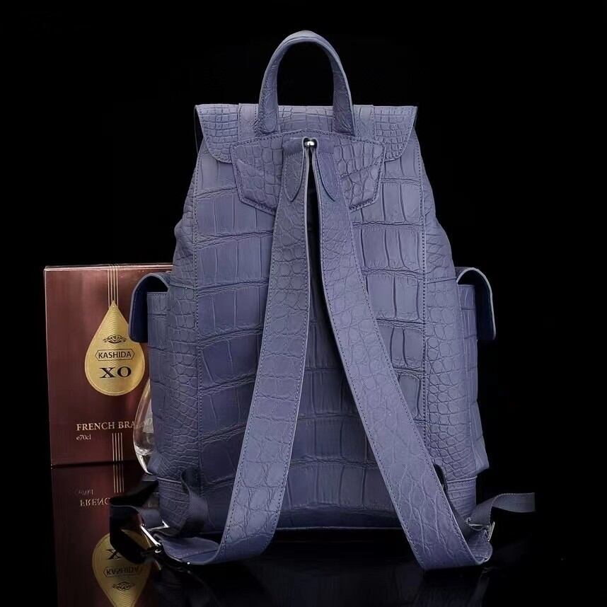 ナイルクロコダイル マット加工 天然ワニ革 リュックサック デイパック◆鞄かばん 大容量 旅行 メンズバッグ 紺