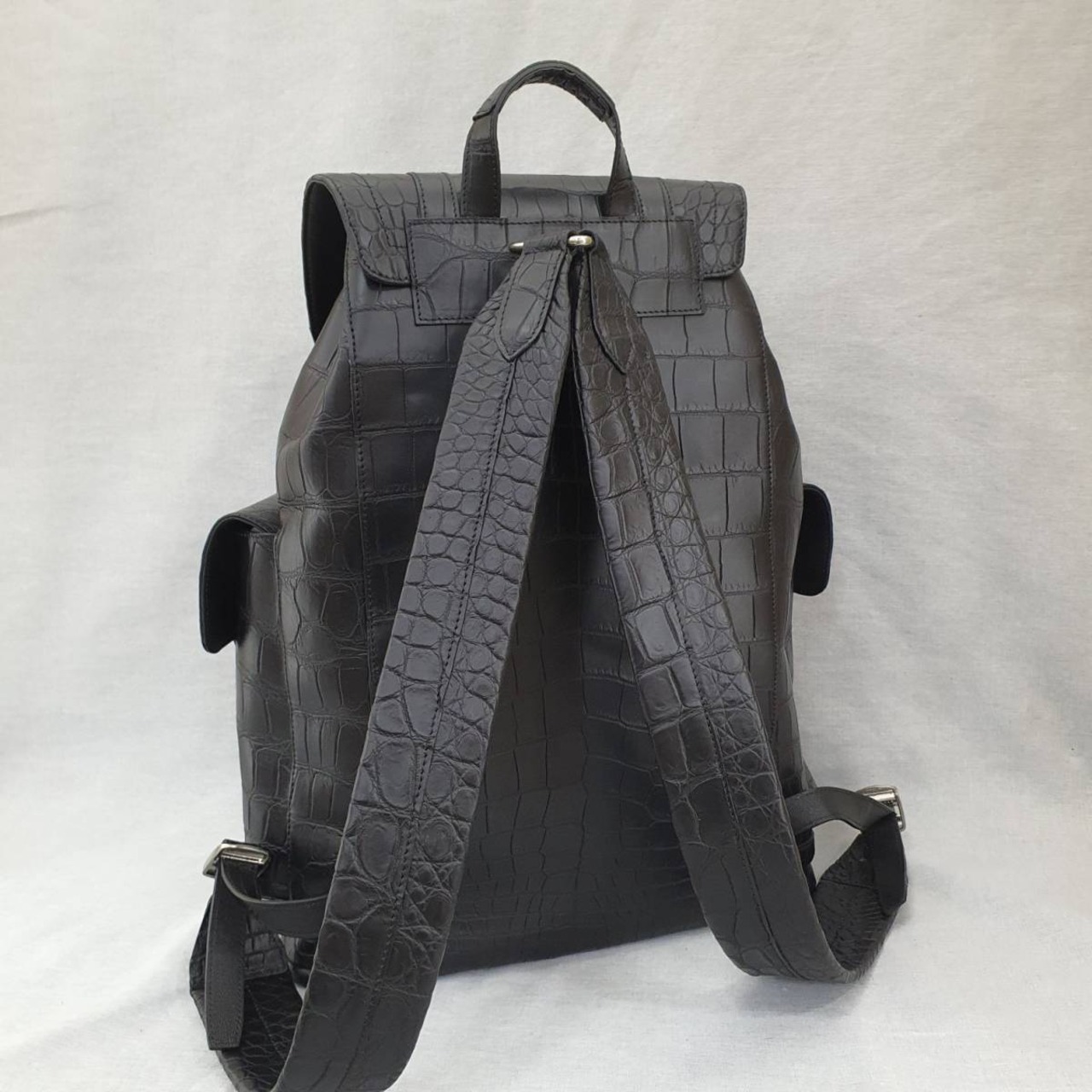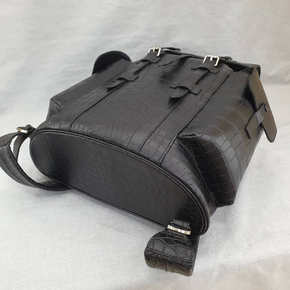 超美品 マット加工 ナイルクロコダイル 天然ワニ革 リュックサック デイパック◆鞄かばん 大容量 旅行 メンズバッグ 黒