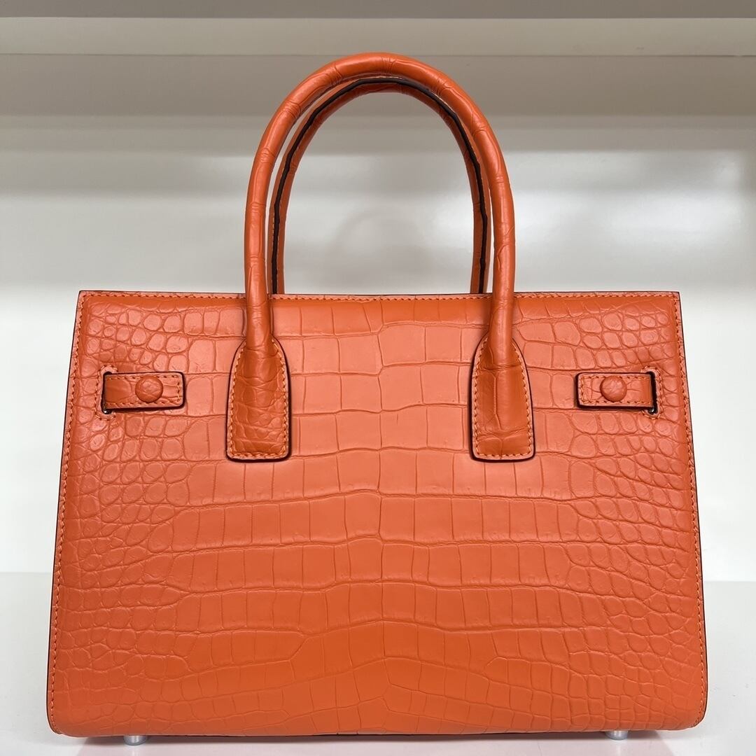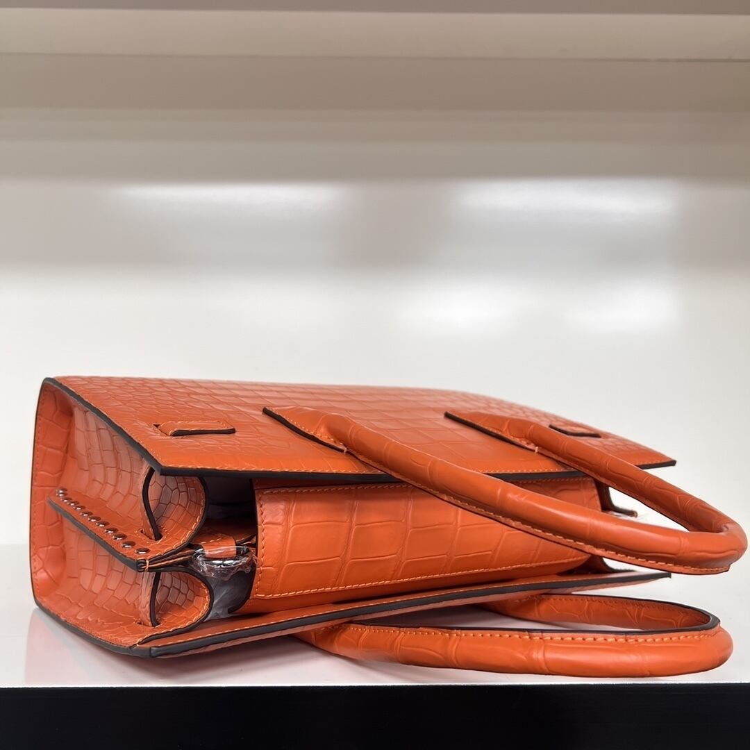 超美品 マットクロコダイル ワニ革 レディースバッグ クロコレザー ショルダーバッグ 大容量 ハンドバッグ 手提げ 肩掛け 鞄 オレンジ