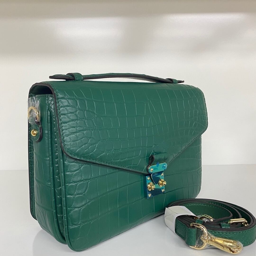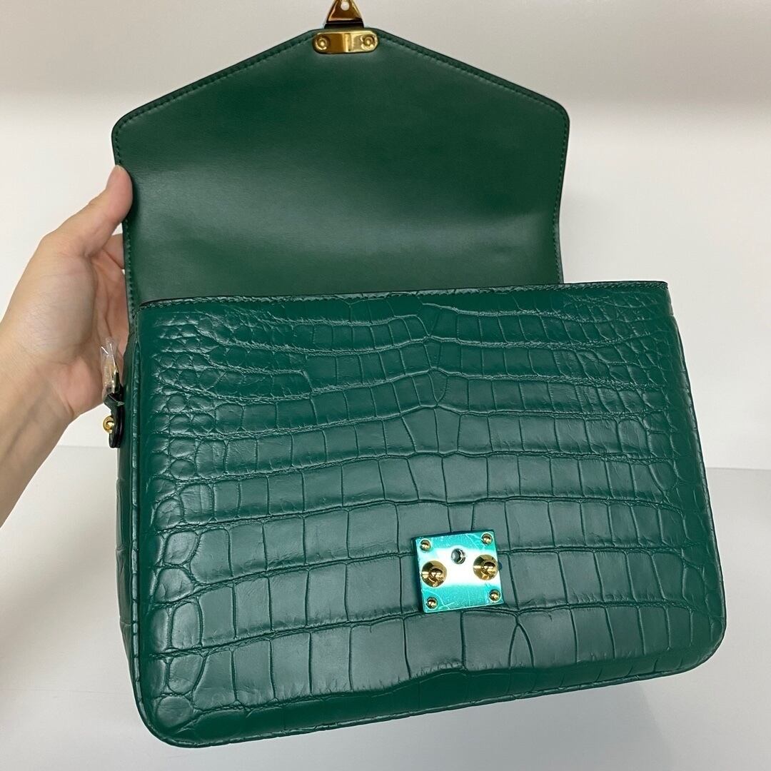 希少品 マット仕上げ クロコダイル ワニ革本物 レディースバッグ センター取り ショルダー/ハンドバッグ 手提げ 肩掛け グリーン
