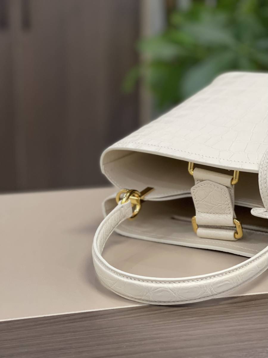 ナイルクロコダイル 最高級 ハンドバッグ ショルダーバッグ 肩掛け ワニ革 センター取り 腹革ワニ リアルクロコ クリーム
