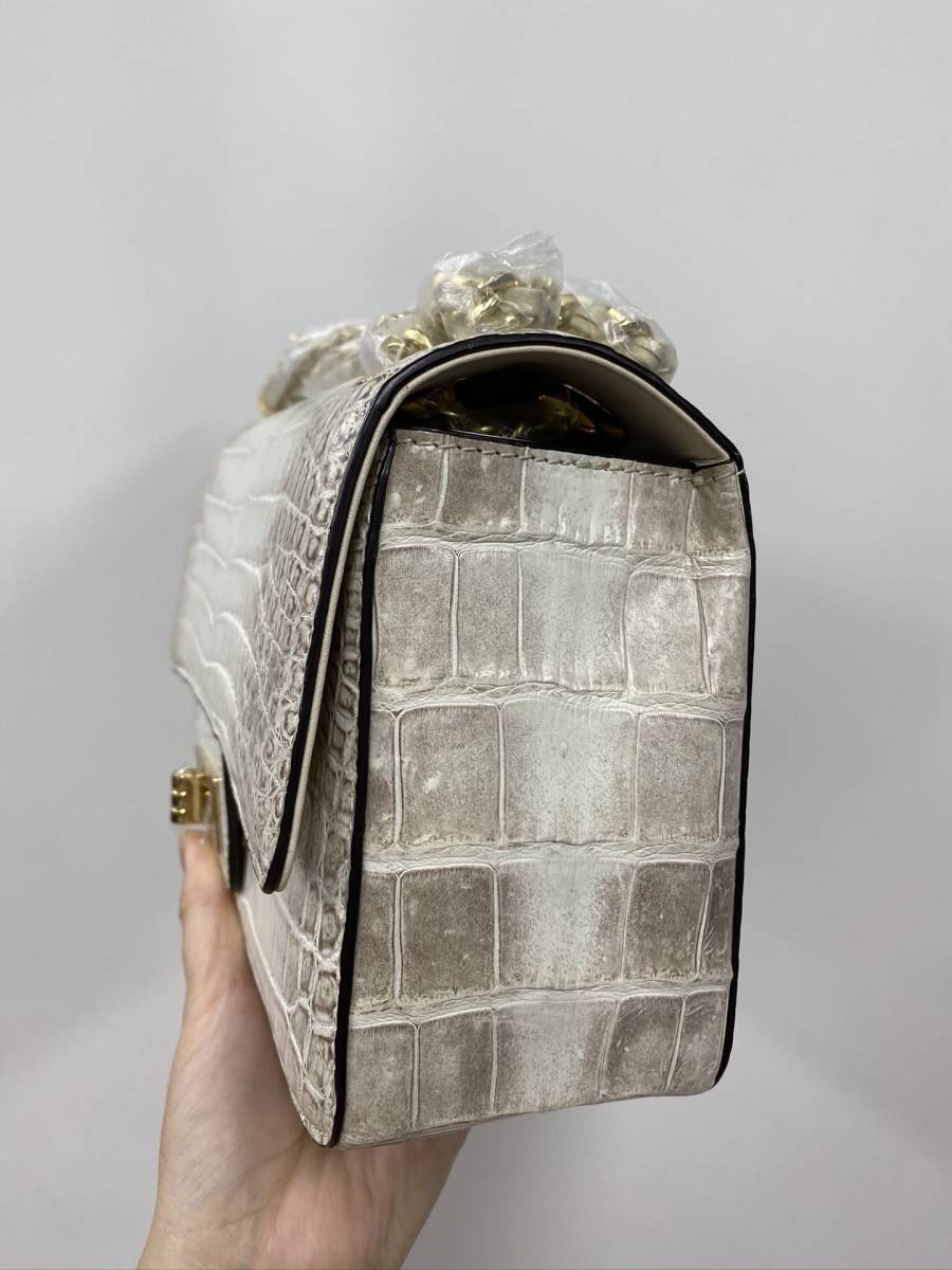 希少品 ヒマラヤホワイト クロコダイル保証 ワニ革本物 腹革 2way斜め掛け ショルダーバッグ 手提げ 長財布 クラッチバッグ