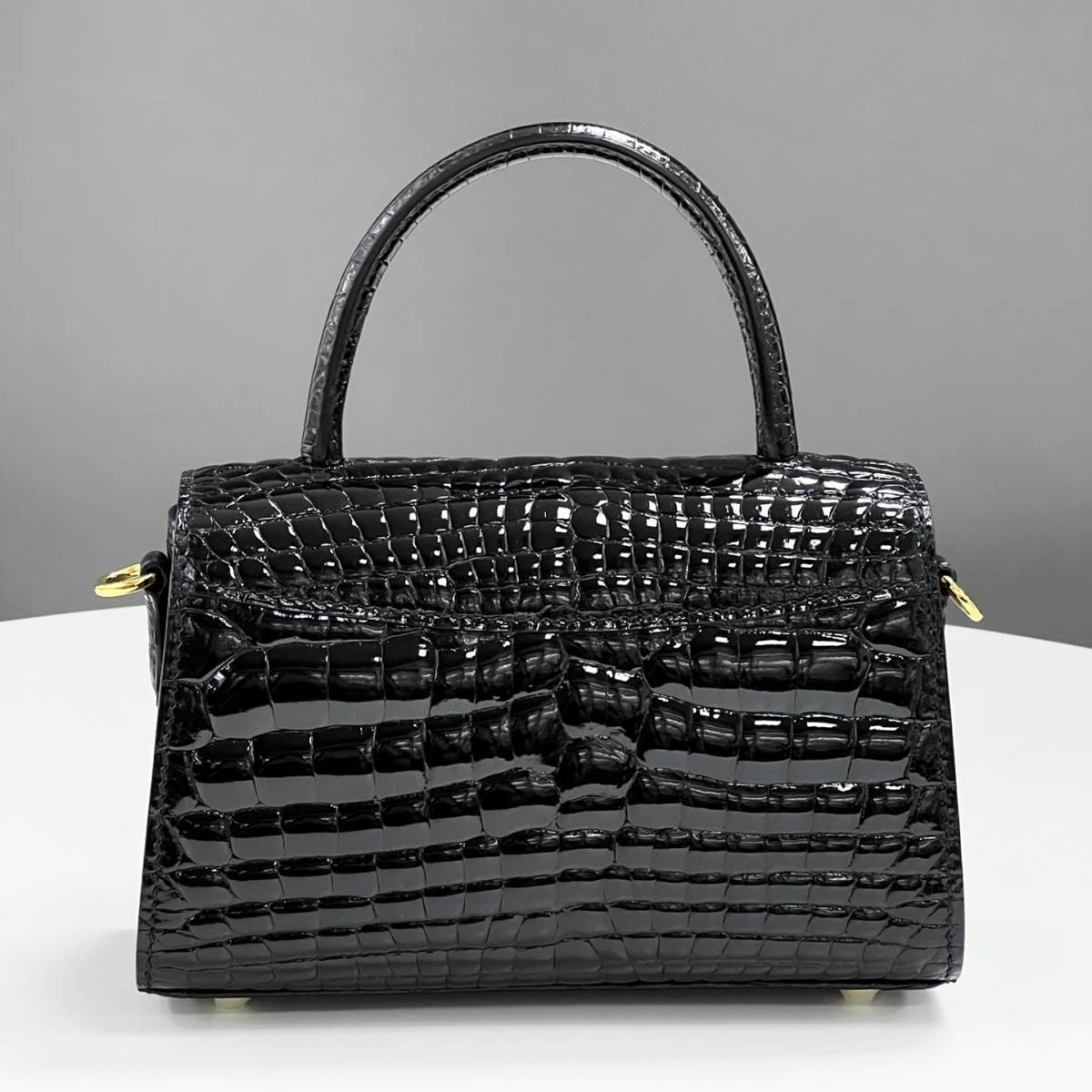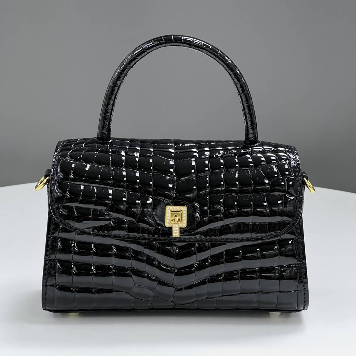 最高級 ナイルクロコダイル ボンベ加工 ワニ革本物 レディース ショルダーバッグ ハンドバッグ ショルダーベルト付き鞄 黒
